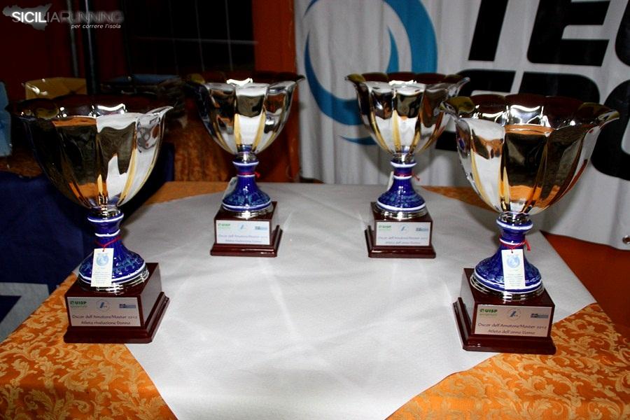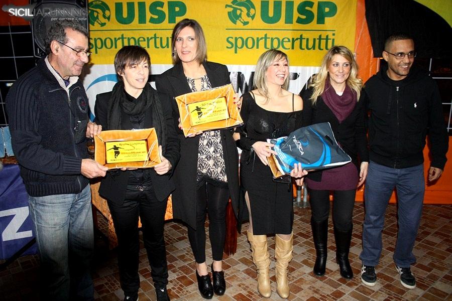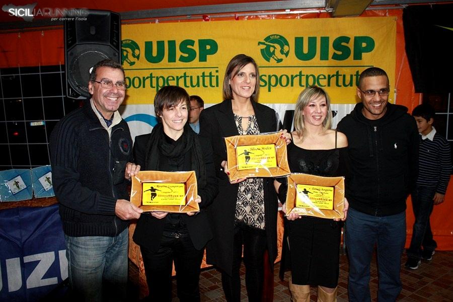 Dicevamo dei tantissimi premi consegnati; per quanto riguarda quelli del Biorace, oltre ai “classificati”, riconoscimenti sono andati ai tanti collaboratori della manifestazione firmata Uisp e Fidal: Pino Sutera, Pino Cernigliaro, Rocco Abbate, Ino gagliardi consigliere regionale della Fidal, Totò di Noto presidente uscente della Fidal provinciale, Anna Vizzini presidente dell’ASD Sport Nuovi Eventi Sicilia, Gioacchino Gioacchino Guagliardito presidente della Uisp provinciale, Tato Fiore di Tecnicasport e al CESD e a Pino Giordano (consigliere nazionale della Fidal). Riconoscimenti anche ai rappresentanti delle testate giornalistiche che nel corso dell’anno hanno seguito (tra i premiati anche noi di siciliarunning.it) la “carovana” del Bio: Edoardo Ullo (La Sicilia), Maurizio Crispi del sito ulatramaratonemaratonedintorni, Ornella Fulco di sicilipodistica.it, la rivista Atletica On Line Uisp e Runner’s World. Altri premi sono stati consegnati nell’ambito dell’Oscar dell’Amatore Master: il sondaggio on line ha designato miglior sito di società quello dell’Universitas Palermo (www.universitaspalermo.com); migliore testata giornalistica del settore, www.siciliarunning.it; il premio come gara più spettacolare è andato alla “ Corsa a Tappe dell’isola di Ustica” (consegnato ad Attilio Licciardi podista di spessore della Nadir ed ex sindaco dell’isola), mentre il premio come miglior evento podistico è stato consegnato a Rosario Filoramo (dirigente nazionale dell’Uisp)  per la 29° edizione del Vivicittà di Palermo. Quattro anche i premi speciali consegnati sempre da siciliarunning.it: al giudice della Fidal Giuseppe Sutera per i suoi 40 anni di attività, al professore Pino Clemente per il libro “storia dell’atletica siciliana” (ha ritirato Ferruccio Bono che ha anche letto un messaggio scritto per l’occasione dal professore Clemente), a Massimo Bianca tecnico della Road Runner Gela e a Yuri Floriani finalista nei 3000 siepi alle Olimpiadi di Londra (questi ultimi due assenti).