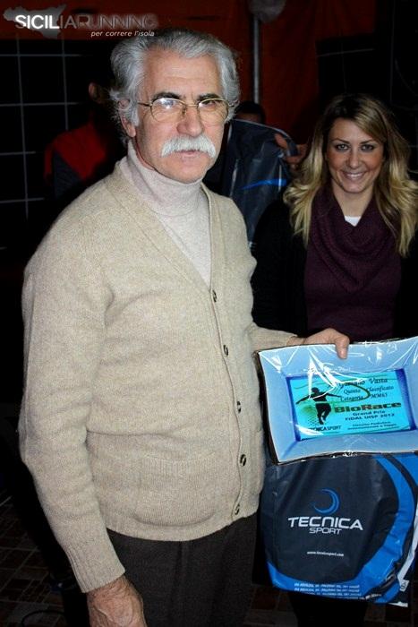 Lunghissimo anche l’elenco dei podisti premiati per il BioRace, categoria per categoria, alla fine se ne sono contati circa 80. Li elenchiamo, in ordine di classifica: nella TM: Massimo Buccafusca, Francesco Di Giuseppe, Giuseppe Troia, Angelo Lo Iacono; TF: Elena Dragotto; M35: Domenico Nunnari, Pietro Giardina, Giulio Prestigiacomo, Giuseppe Ingrassellino, Filippo Scafidi, Angelo Guastella, Salvatore Moscadini, Francesco Caruso; F35: Daniela Bongiorno, Silvana Modica, Rosanna Giamporcaro; M40: Antonio Amiri, Andrea Travaglio, Vittorio Ammirata, Dino Cirrito, Roberto Spata, Ninni Lo Bozzo, Francesco Limanni; F40: Maria Teresa Bonsignore, Grazia Ferro; M45: Gaetano Immesi, Rosario Cirrito, Antonino Geraci, Vito Inzerillo, Antonio Anselmo, Salvatore Vivirito, Giovanni Albano, Francesco Signorino, Paolo Vassallo, Maurizio Potenzano, Luigi Miserendino, Francesco Cimino, Michele Guzzo; F45:  Loredana Perruccio, Maria Pia Albanese; M50: Elio Amato, Michele Barrale, Antonino Gebbia, Salvatore Armango, Ignazio Biundo, Attilio Licciardi, Francesco D’Arrigo; M55:  Antonino Taormina, Giovanni Billeci, Maurizio D’Ippolito, Pino Cernigliaro, Federico D’Ascoli, Giovanni Caruso, Antonino La Rosa, Antonio Arcaio; F55: Antonina Ienna; M60: Mario Luzzu, Giuseppe Monarca, Roberto Faro; M65: Domenico Salvia, Salvatore Prestigiacomo, Girolamo Schillaci, Pino Misuraca, Gaetano Vasta, M70: Giuseppe Pipia, Salvatore Lo Piccolo, Pietro Mafara, Domenico Vitale, Giovanni Viterbo. Premiati anche gli stakanovisti del circuito che hanno disputato tutte le gare, Ninni Lo Bozzo e Giovanni Billeci maglio conosciuti ormai come i Biomen.