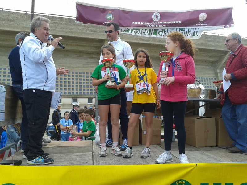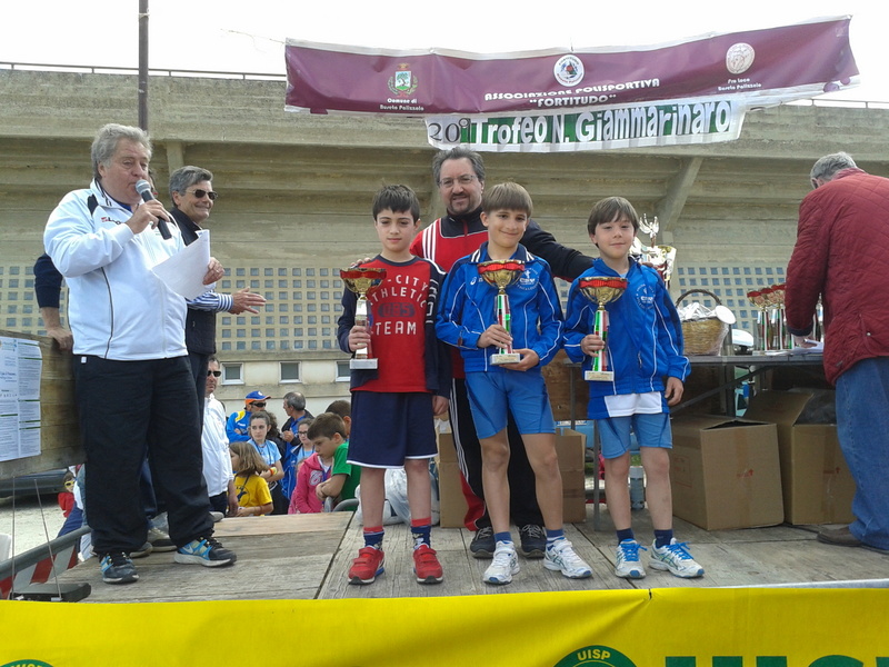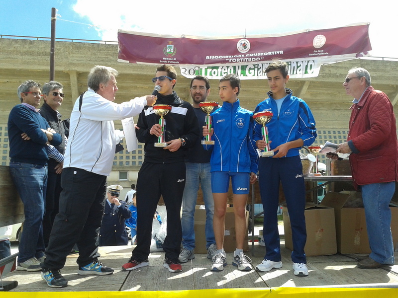 10154449_10202032556161575_5891295289364694906_nBUSETO PALIZZOLO (TP). La 20° edizione del Trofeo “Nicolino Giammarinaro” – III° Memorial volata “Prof. Giuseppe Tagliavia” che si è svolto a Buseto Palizzolo, va in archivio con un buon numero di partecipanti sia per il settore giovanile che per la gara riservata agli amatori. Il collaudato circuito che si snoda nella panoramica area in prossimità dello stadio comunale, per 1,2 km da percorrere 4 volte per gli over M60 e donne, mentre per le restanti categorie i giri sono stati 5 per un totale di 6 km, ha visto la partecipazione circa 100 atleti con la gradita presenza di numerosi atleti provenienti da fuori provincia. Prima delle donne a tagliare il 10311870_10203815644250977_1957949486_ntraguardo è stata Dorotea Lo Cascio della 5 Torri Trapani, seguita da Anna Maria Bommarito sempre della 5 Torri e da Lorena Celano della UISP. Primo degli uomini over 60, l’atleta della 5 Torri Trapani Mario Zinna, seguito da Antonio Aiuto sempre della 5  Torri e da Mimmo Salvia del Club Atl. Partinico. Per le restanti categorie, nuova doppietta della Volata di Antonio Criscenti, come era successo al Vivicittà di Trapani, con i suoi atleti Filippo Porto (19’ e 57”) e Paolo Cicala (20’ e 07”) seguiti da Vincenzo Giangrasso  (20’ e 41”) della ASD Lipa Atletica Alcamo. Buona l’accoglienza riservata agli atleti con la gradita presenza del Sindaco e dell’assessore allo Sport della città che ospita la manifestazione.