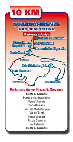 Piazza San Giovanni – Via del Proconsolo – Via Ghibellina – Via Buonarroti – Via dell’agnolo – Via Salvemini – Via Sant’Egidio – Via Bufalini – Via dei Servi – Piazza S.S. Annunziata – Via Battisti – Piazza San Marco – Via di Ricasoli – Via dei Pucci – Via Martelli – Piazza Duomo – Piazza San Giovanni