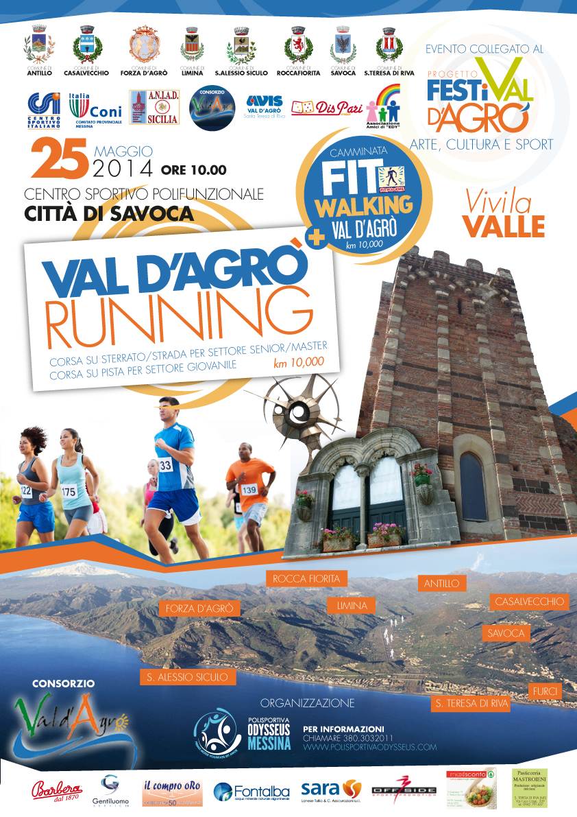 1^ PROVA – 25 maggio“VAL D’AGRO’ RUNNING” c/o Savoca – Valle d’Angrò – Corsa su sterrato-strada di km 10.400 (Senior/Master);Corsa su pista (Settore Giovanile); Fitwalking (Km 10.400)