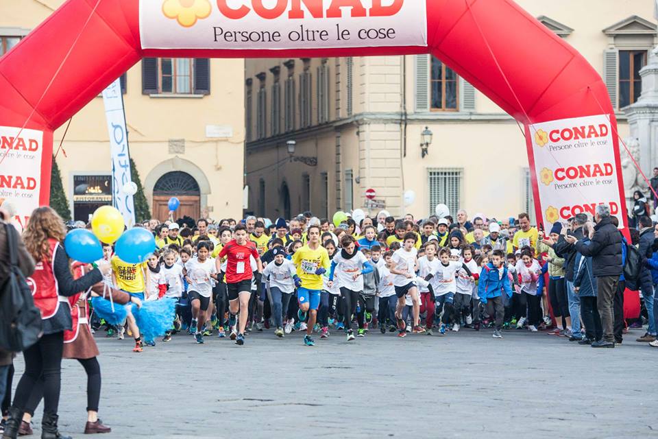 Alle 9.45 da Piazza Santa Croce è partita la Ginky Family Run di un chilometro e mezzo tutto nelle vie del centro storico di Firenze, con arrivo nella stessa piazza, con circa 2000 tra ragazzi e adulti al via.