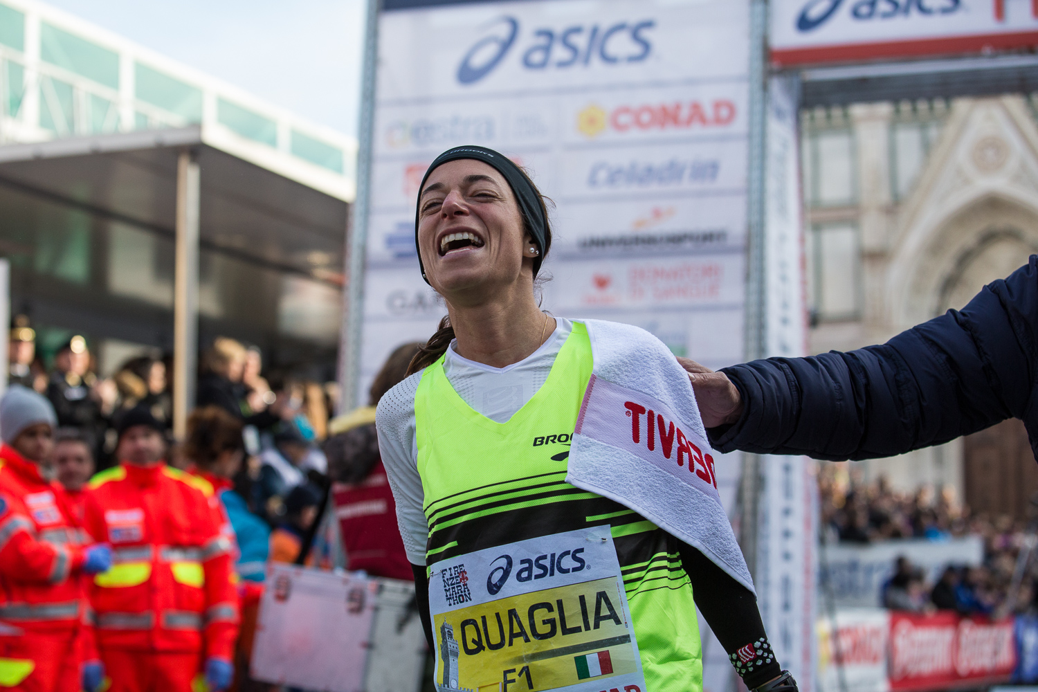 E’ felice la genovese Emma Quaglia sul traguardo in piazza Santa Croce: “Ho corso rilassata, senza il cronometro, godendomi il percorso e la città di Firenze e la piacevole battaglia tra avversarie. Soddisfatta del mio 2h36’00” e soprattutto di essere arrivata sul podio che ci tenevo tantissimo. Quando ero quarta ho iniziato a vedere la keniana Jane Moraa Onyangi davanti a me al 38°km, l’ho agganciata e superata al 41°km. Forse era un po’ in crisi, ha reagito e ha provato a starmi dietro ma a quel punto ho davvero dato io un leggero scossone per distanziarla e potermi assicurare la terza posizione. Felicissima, un po’ il freddo mi ha condizionato all’inizio mentre nella seconda parte di gara ho dovuto tener duro perché non è facilissima come gara. Ora vediamo in primavera di fare un grande tempo”.