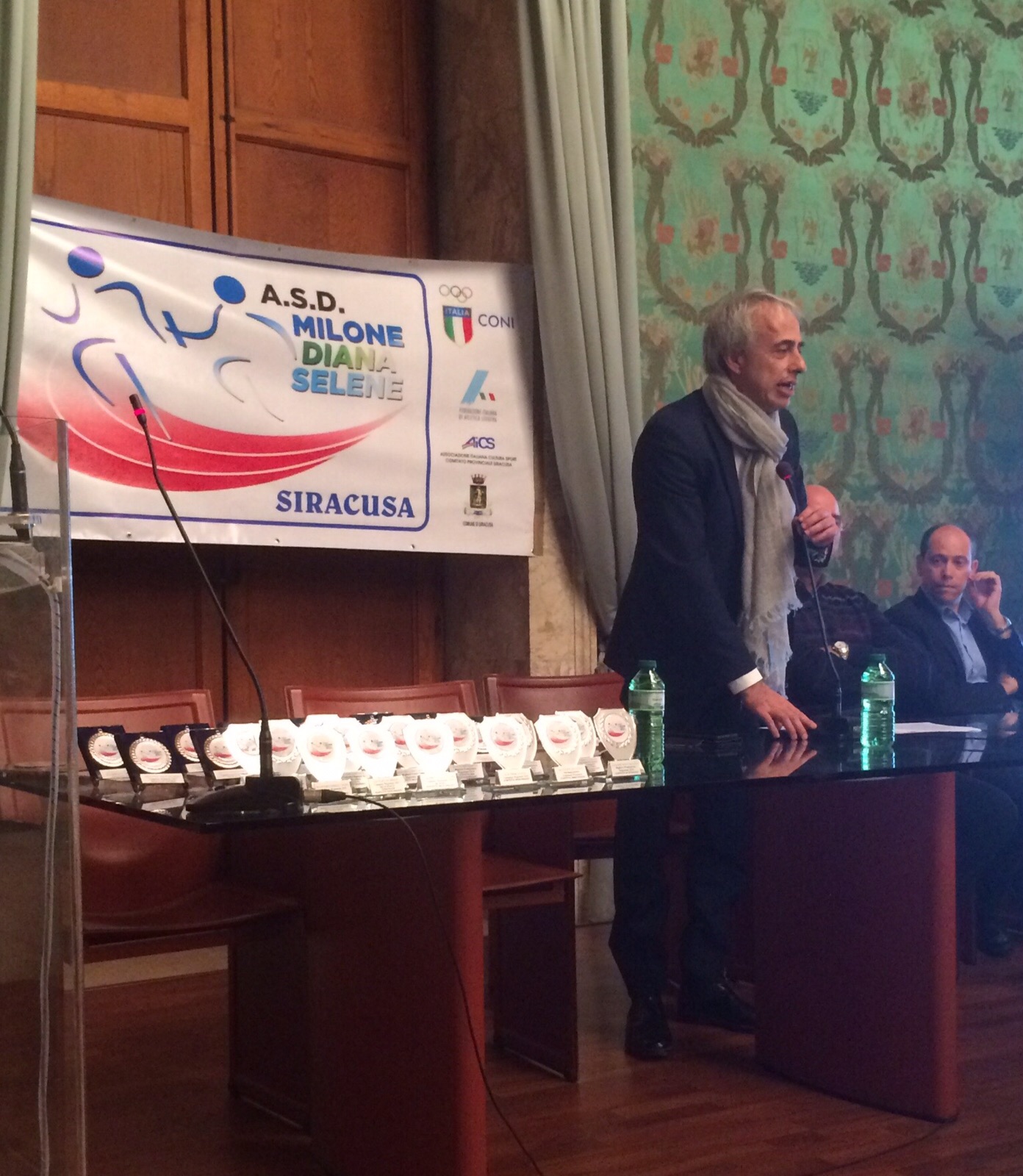 Siracusa. Sabato scorso, presso il salone Paolo Borsellino di Palazzo Vermexio (sede del Comune della città di Siracusa) si è svolta la cerimonia di premiazione delle società Milone Diana e Selene per premiare gli atleti che si sono distinti durante la stagione agonistica 2015 e presentare le nuove