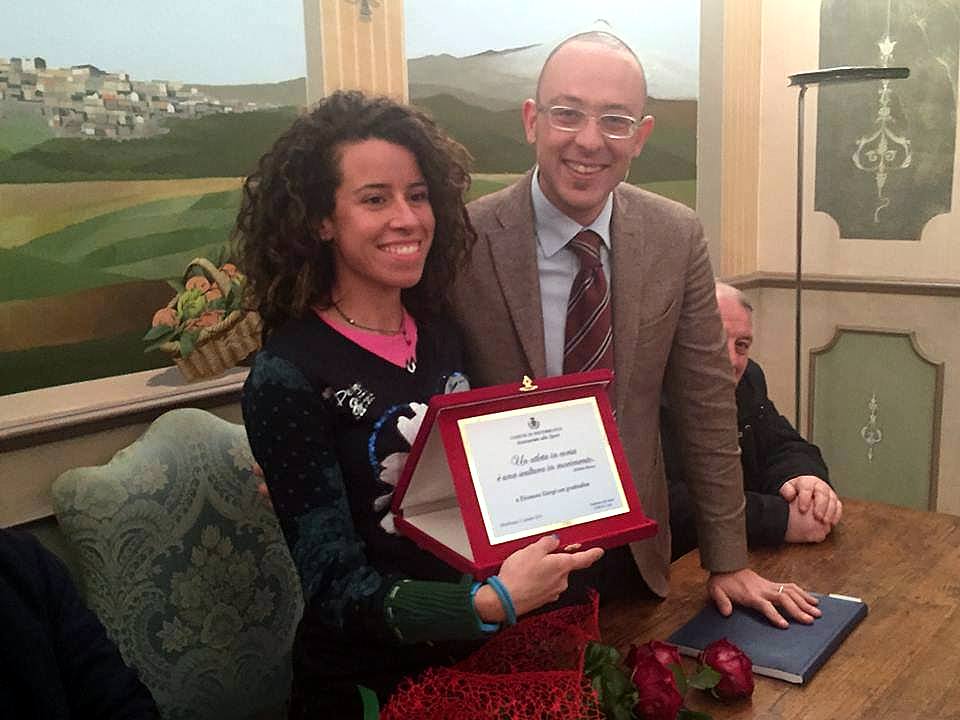 Ieri pomeriggio la Giorgi è stata ricevuta dall’assessore allo Sport Federico Lupo e dal presidente del Consiglio comunale Antonino Marchese, presenti gli assessori Giuseppe Condorelli, il vice sindaco Marco Corsaro ed il consigliere Marcello Russo, i quali l’hanno omaggiata con un bouquet di rose ed una targa dell’amministrazione comunale con la scritta “Un atleta in corsa è una scultura in movimento”.