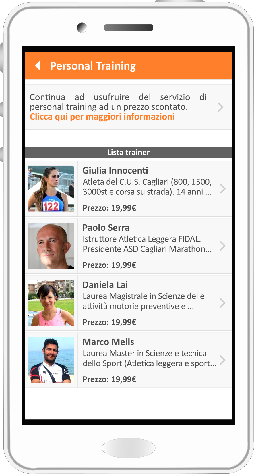 personalizzato sulle caratteristiche del runner e lo seguono passo passo per ottenere un allenamento perfetto. Con il personal trainer si apre un vero e proprio canale di comunicazione nell’app e online, sarà lui a motivare, spronare e gratificare in funzione dell’impegno e dei risultati raggiunti.