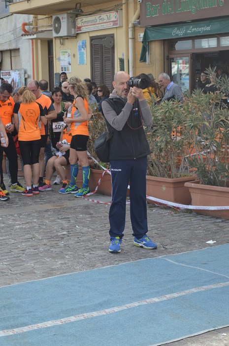 pesciolini sono freschissimi, saltellano nelle cassette e anche noi podisti iniziamo a saltellare iniziando l’indispensabile fase di riscaldamento. La piazza è ingombra di gente e tutti migriamo verso il lungomare che costituirà il tracciato della gara. Assaggiamo così il venticello che dovremo contrastare durante la corsa. Ben presto lo speaker Marcellino “chiama l’appello”. La “gabbia” per i migliori oggi mi sembra una “gabbietta” dentro la quale vedo alcune presenze “sospette”, ma non siamo alle olimpiadi, i controlli non sono ferrei e dopo alcuni minuti cadono le separazioni e si genera una bella miscellanea, “migliori e meno veloci”, “giovani e anziani” “tutti insieme appassionatamente”. Manca il “gonfiabile”, riferimento delle zone di arrivo e partenza, forse si sgonfiato o è stato dimenticato a casa, non ha importanza, noi podisti cerchiamo di immaginarcelo, ne faremo a meno.