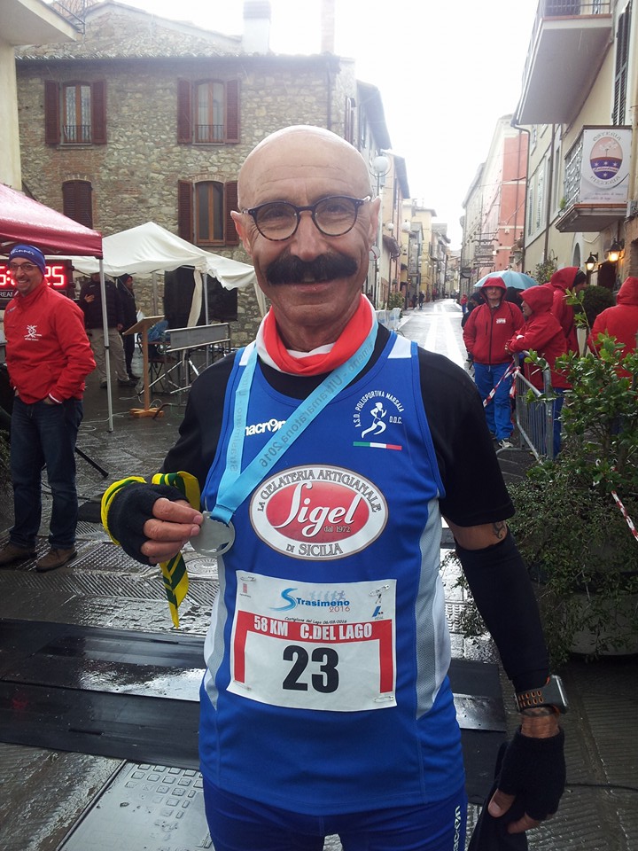 categoria SM60 con il tempo di 4 ore e 59 minuti. Per D’Errico – in fase di preparazione in vista della “Milano-Sanremo”, la più ultra delle ultra-maratone alla quale sono stati ammessi solo 50 atleti che arriveranno da varie nazioni – quella del lago Trasimeno è stata la 94esima esperienza tra maratone e ultra.