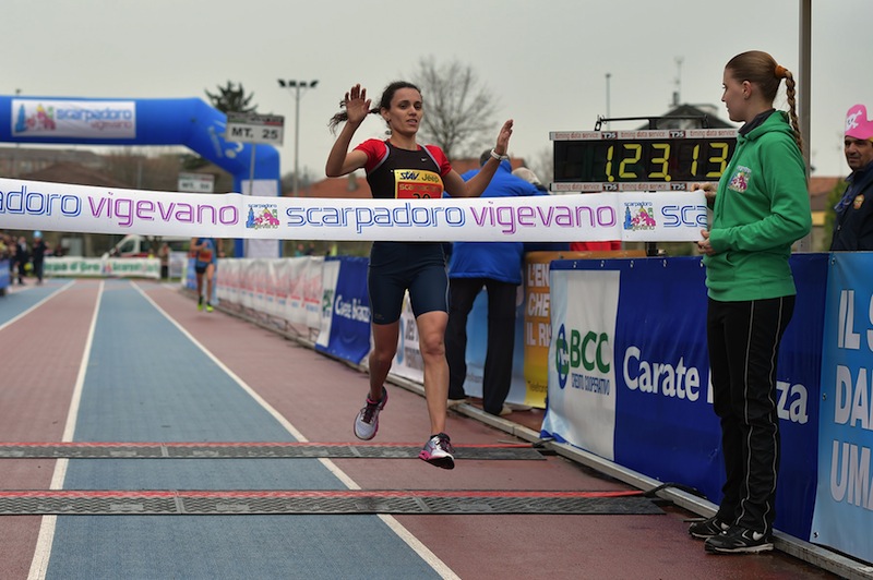 Vigevano – Storie nuove per i 10 anni di vita della Scarpadoro Half Marathon, svoltasi in una mattinata dal cielo grigio e l’aria frizzante a Vigevano. Non era mai successo che un’atleta dell’Atletica Vigevano, società organizzatrice, vincesse questa classica, figlia della Scarpa d’Oro internazionale nata nel 1980, con Sebastian Coe come padrino.