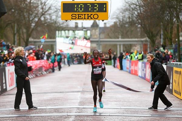 DONNE – Al via 86 atlete da 35 nazioni, ma a fare la gara sono le favorite di Kenya ed Etiopia. Nei primi chilometri in testa c’è un gruppo di 25, che si riduce a 14 al passaggio ai primi 5km in 16:31. Lungo la Cardiff Bay guidano Limo, Jepchirchir and Kipkoech, su un ritmo da 1h08 (32:34 ai 10km, 48:14 ai 15km) cui prova a resistere la sola Gudeta. Limo (con l’1h06:04 corso un mese fa a Ras Al Khaimah detentrice della terza prestazione mondiale di sempre) sembra avere la meglio, ma il rientro di Jepchirchir non lascia scampo, e il cronometro recita: 1h07:31 per la vincitrice, 1h07:34 per Limo, 1h07:54 per Wacera, che torna sul podio dopo l’argento di Copenaghen. E’ tripletta keniana, con le etiope Gudeta e Yalew che scivolano giù dal podio. In un contesto in cui le prime otto posizioni sono colonizzate dai due paesi africani, Veronica Inglese imposta una gara coraggiosa, sfruttando nei primi chilometri il traino delle leader della corsa. Quando le prime cambiano ritmo, rimane in sospeso fra il gruppetto di testa e le