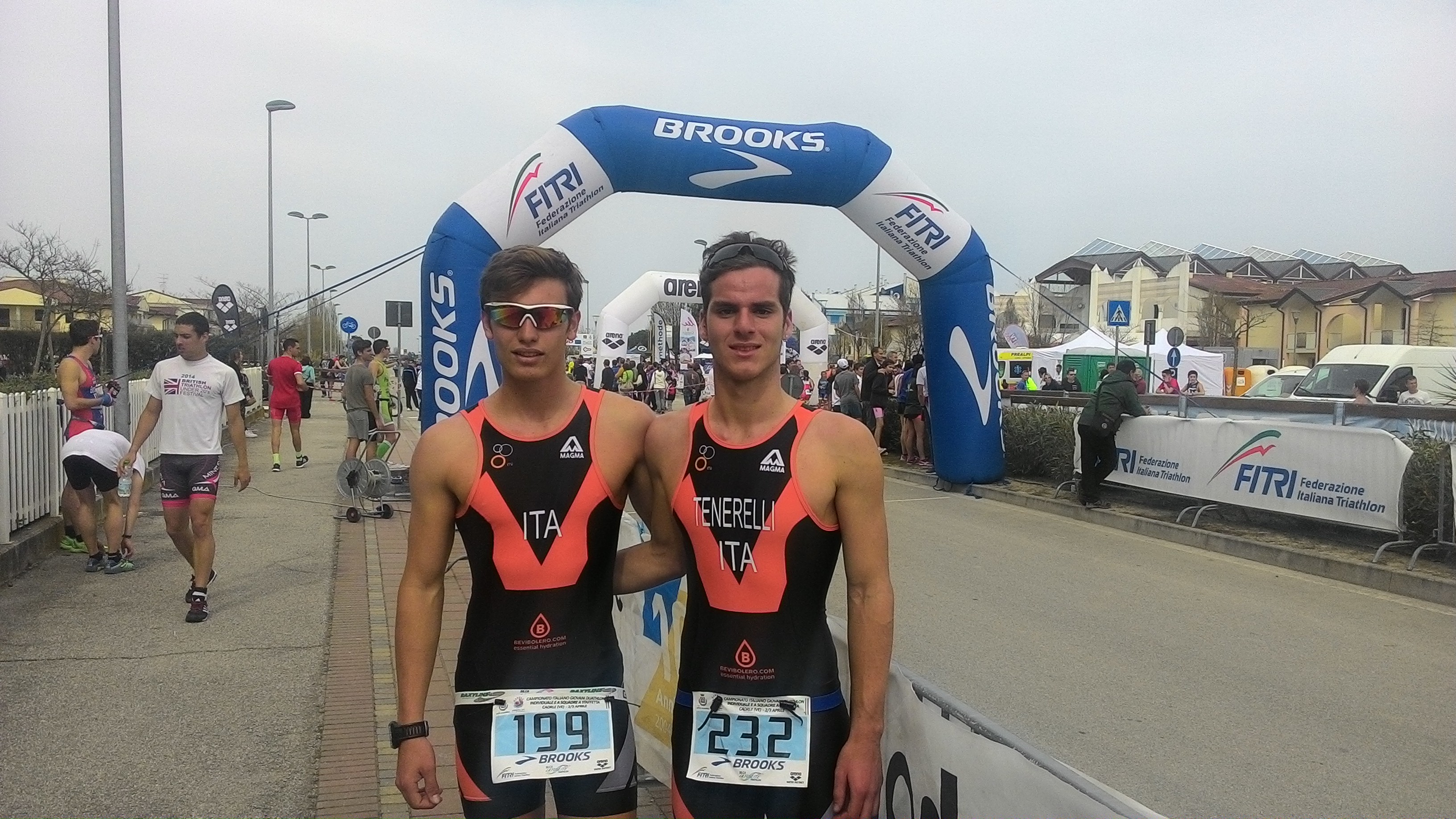 Gara individuale. Antonio Limoli, primo anno Junior, si classifica al 23esimo posto. Nonostante le 2 settimane di stop forzato per lievi problemi di salute che hanno compromesso la sua prestazione a Firenze, si è ripreso grazie ad una prima frazione di corsa tirata, una frazione ciclistica, suo punto di forza, all’altezza delle aspettative e una conclusione positiva. Discreta prestazione da parte di Luca Tenerelli che ha gestito le prime 2 frazioni in modo soddisfacente, per poi subire un lieve calo nell’ultima parte ma nel complesso, al suo esordio in Coppa Italia, ha raggiunto il 39esimo posto, dietro alcuni degli atleti più esperti in campo italiano. (NELLA FOTO LIMOLI E TENERELLI). Nella categoria Youth B, ottima prima frazione di corsa da parte di Eugenia Guglielmino, triatleta esordiente che si è rivelata tra più valide della sua età; ha perso alcune posizioni in bici, recuperandone qualcuna nell’ultima prova di corsa. La Junior Matilde Reitano ha gestito la gara in modo opposto alla sua compagna di squadra, risparmiandosi nella corsa ed esprimendosi al meglio durante i 20 km di bici.