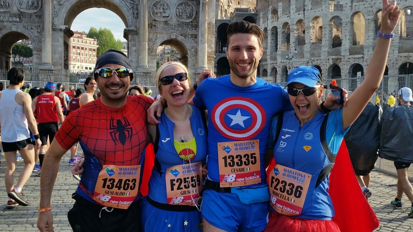 Marco Anello (4h11’41), Marcella Passante (4h22’32), Luigia Capriglione (4h29’47) e Giuseppe Fiorilla (4h56’12) che ha dedicato la sua prova alla moglie e alla figlia che sta per nascere. A chiudere (e che chiusura) Giusi Cutrona (5h16’22) che ha corso la gara in tuta da Wonder Woman, giungendo al traguardo dei Fori Imperiali in compagnia di altri due “podisti – super”, spider man (Gesualdo Scillia) e Capitan America.