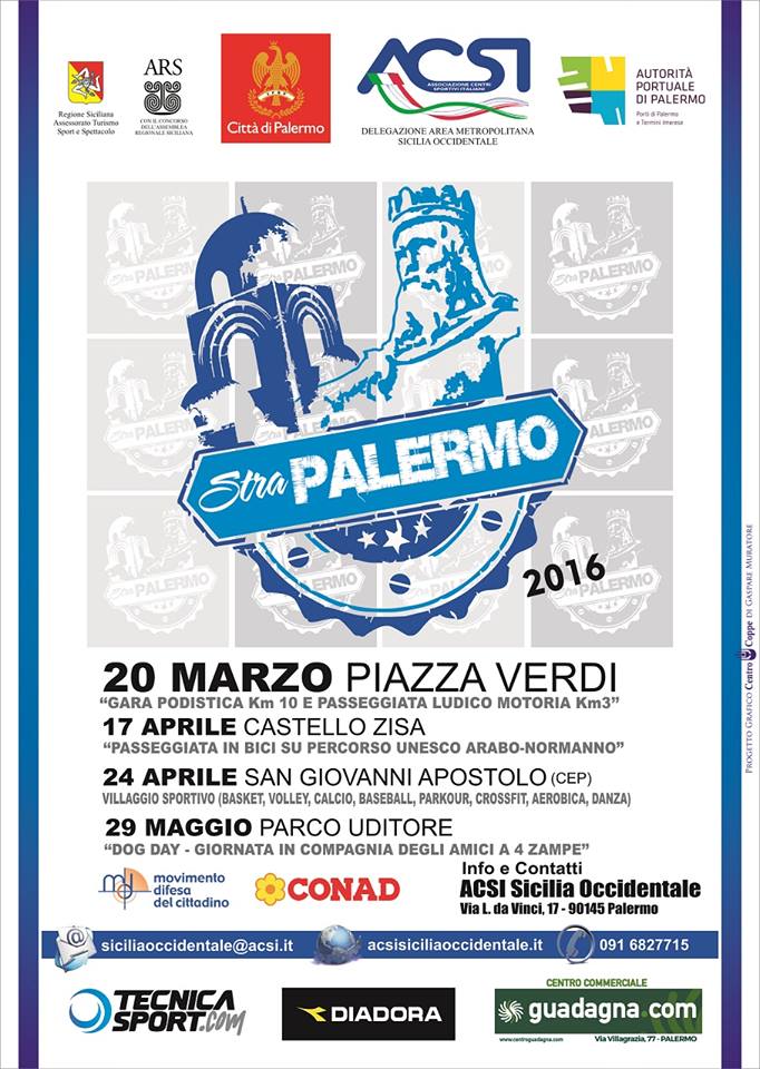 Palermo, 20 aprile 2016. La StraPalermo torna con il terzo dei quattro appuntamenti della grande manifestazione targata Acsi Sicilia Occidentale.