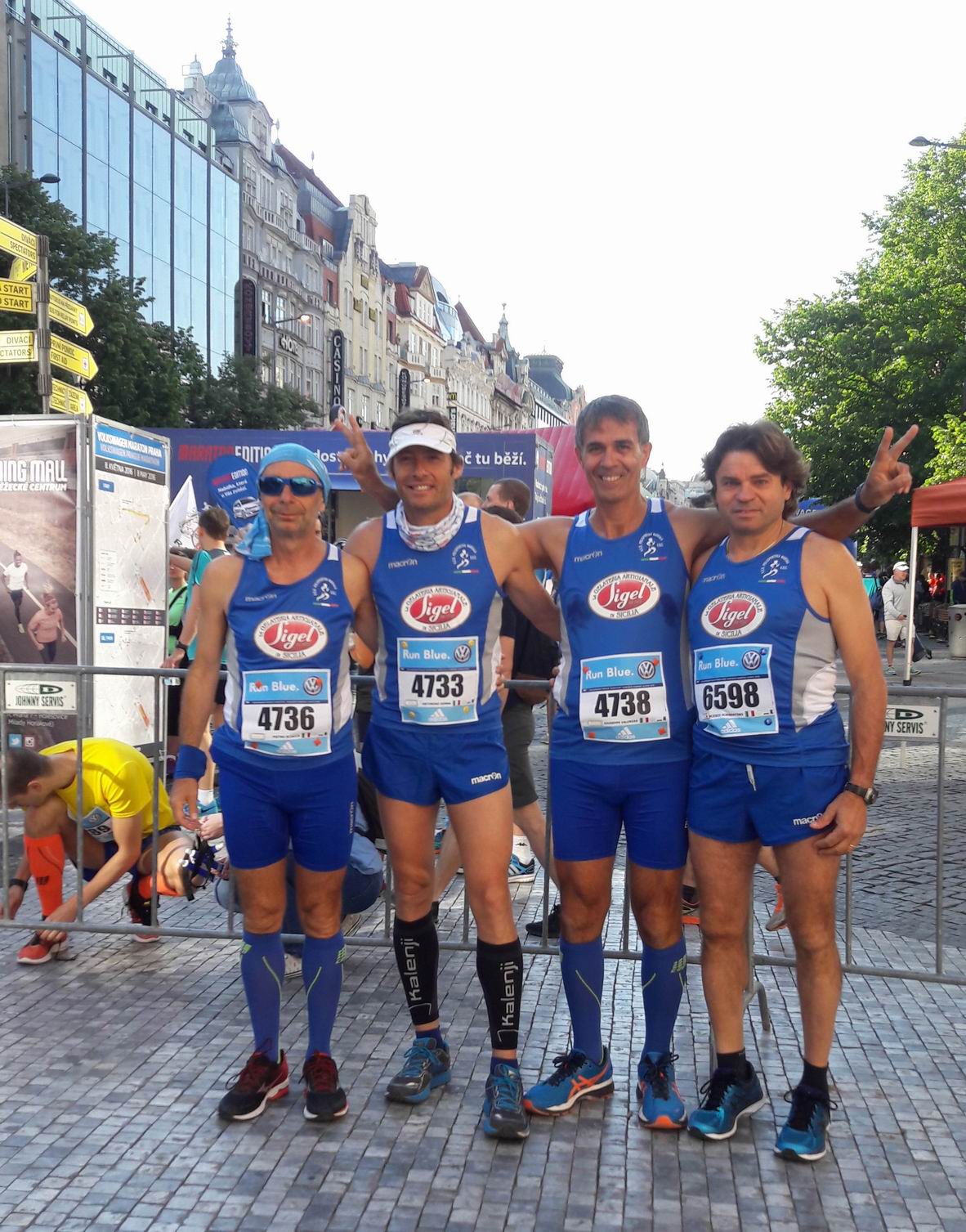 Da Terrasini a Praga, passando per Rieti e Fano, gli atleti della Polisportiva Marsala Doc hanno partecipato a gare di livello nazionale e internazionale. Nella cittadina palermitana stati in 30 a tagliare il traguardo nella 16° edizione della “Maratonina di Terrasini”, quinta priva del Grand Prix regionale Fidal. Nella gara – vinta dal 33enne poderoso atleta della “Casone Noceto” Carmine Buccilli con il tempo di 1 - Atl. - fasi Mezzamaratona Terrasiniora, 8 minuti e 6 secondi, seguito dal marocchino Bibi Hamad, due settimane prima vincitore a Marsala, e dal sempre grande Vito Massimo Catania – il migliore dei marsalesi è stato il solito Pietro Paladino, che con un’ottima prestazione cronometrica (1:18:59) è stato 14° assoluto, su circa mille concorrenti, e terzo nella sua categoria d’età (SM45). A seguire, tra i biancazzurri, hanno tagliato il traguardo posto in piazza Duomo Vincenzo D’Accurso (1:31:19), Antonio Pizzo (1:32:45), Enzo Lombardo (1:33:53), Giuseppe Mezzapelle (1:35:37), Ignazio Salvatore Cammarata (1:35:47), Diego Massimo Pipitone (1:37:31), Ignazio Abrignani (1:37:54), Vincenzo Castiglione (1:42:07), Marianna Cudia (1:42:08), Ubaldo Cascia (1:44:26), Giuseppe Cerame (1:44:59), Agostino Impiccichè (1:45:00), Giuseppe Parrino (1:47:09), Francesco Petruzzellis (1:47:19), Antonino Alagna (1:48:58). E inoltre, Salvatore Pipitone (1:50:10), Piero De Vita (1:52:02), Giuseppe Pipitone (1:52:26), Matilde Rallo - Atleti Pol. Marsala Doc a Praga - da sinistra, Sciacca, Genna, Valenza e Sorrentino(1:53:47), Giovanna Ornella Ferrante (1:54:22), Mario Pizzo (1:55:45), Michele Torrente (1:58:39), il presidente Filippo Struppa, anche lui sotto la barriera delle due ore (1:59:31), e infine Antonino Badalucco, Roberto Fabrizio Angileri, Salvatore Panico, Vito - Atl. - Michele D'Errico alla sua 100esima maratonaGiuseppe Cascio, Paola Imparato e Domenico Ottoveggio. Contestualmente, a Fano, Michele D’Errico ha tagliato il prestigioso traguardo delle 100 maratone in carriera. Un’impresa davvero epica (senza dubbio da festeggiare) che arriva dopo le fatiche dell’ultima “Milano-Sanremo”. Alla “ColleMar-athon Barchi-Fano”, D’Errico ha fatto registrare il tempo di 3:44:05. Una prestazione eccellente se si considera che appena 24 ore prima aveva corso la 50 km di Rieti, dove si è piazzato al primo posto di categoria (SM60). Anche in questo doppio impegno D’Errico è stato accompagnato dall’amico Vincenzo Pecunia. Ma i colori della Polisportiva Marsala Doc sono stati rappresentati anche alla Maratona di Praga con Pietro Sciacca, Antonino Genna, Giuseppe Valenza e Francesco Sorrentino. E tutti hanno tagliato il traguardo. Impresa mai facile. Il più veloce, tra i quattro, è stato Pietro Sciacca (3:39:36), seguito da Antonino Genna (3:42:32), Pino Valenza (3:56:56) e Franco Sorrentino (4:32:52).