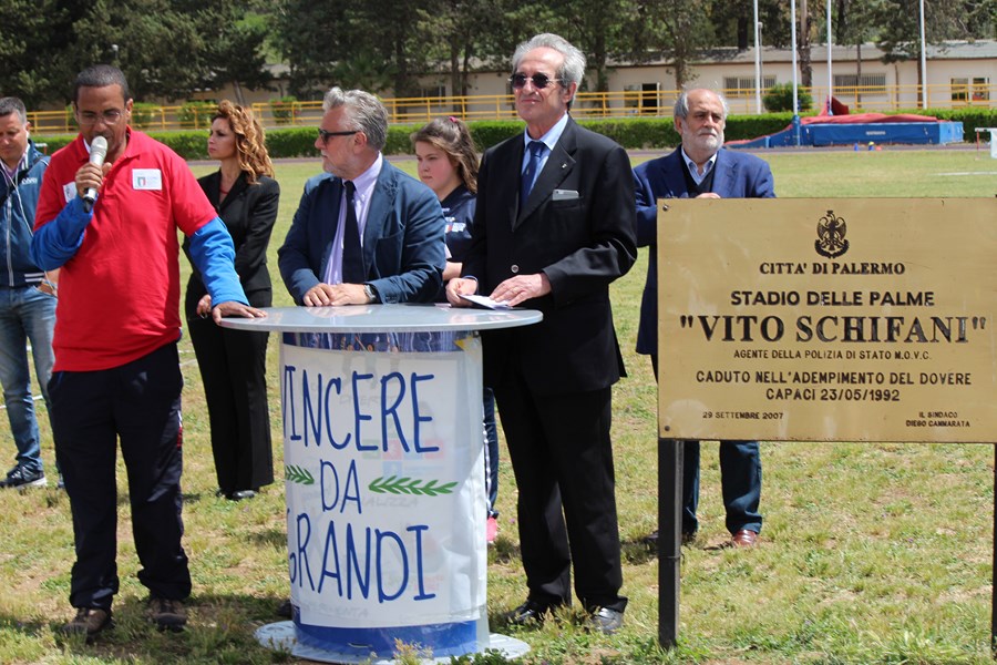 La giornata ha vissuto anche un momento istituzionale con la presenza “in campo” del presidente del Coni Sicilia Sergio D’Antoni, del sindaco di Palermo Leoluca Orlando e degli assessori assessori allo Sport e alla Scuola, Giuseppe Gini e Barbara Evola. Alla fine targhe per i dirigenti scolastici degli istituti e medaglie per tutti i piccoli atleti; tutti con indosso la maglietta con la scritta “ le loro idee correranno sulle nostre gambe…perchè il pensiero era rivolto a lunedì prossimo 23 maggio, 24° anniversario della strage di Capaci.