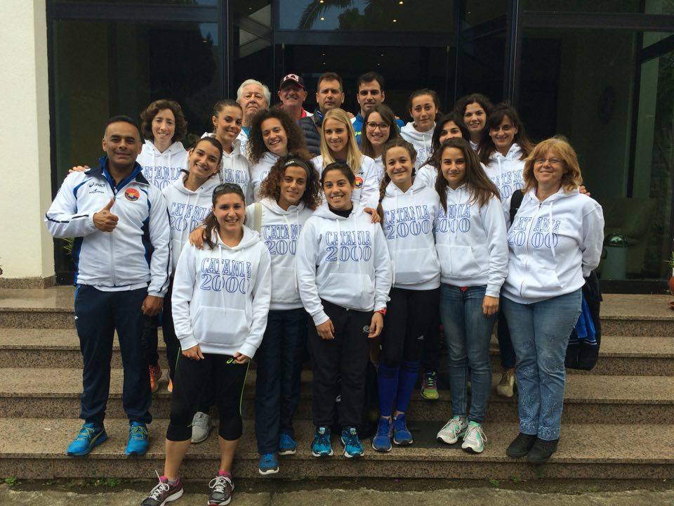Non solo ma, l’ASD Catania 2000 ha già conquistato matematicamente un posto nella finale B dove l’obiettivo sarà quello di centrare il massimo dei risultati possibili. Un exploit, considerando che Catania 2000 quest’anno ha allestito la propria squadra con atlete per lo più siciliane appartenenti alla categoria allieve, juniores e promesse: è stata sin dall’inizio proprio questa infatti la mission della giovane società catanese, quello di fare crescere talenti siciliani e permettere loro di fare esperienza in campo nazionale, confrontandosi con atlete più mature e più esperte. Quale il segreto di questa isola felice, sarà forse l’incoscienza e l’entusiasmo delle più giovani a fare di Catania 2000 una società di successo? Domanda che si pone la stessa dirigenza, oltre che gli addetti ai lavori. Sicuramente dietro a questa grande e rinomata “famiglia” c’è il lavoro dell’intero gruppo dirigenziale coadiuvato dal direttore sportivo Emanuele Biancarosa e la passione di uno staff tecnico degno di nota: tra questi Paolo D’Antone, Manuel Gallo, Massimo Bianca, Vito Riolo, Luisa Madella, Luisa Celesia, Giuliana Zuin, Nuccio Leonardi, Letizia Buggea, Totó Dioguardi, Francesco Attanasio, Salvo pisana, Yuri Floriani, Giuseppe Distefano, Francesco Giannone e Giuseppe Sciuto; tutti uniti dalla grande competenza e che si dedicano a questo sport con grande amore e sacrificio, chi per tradizione familiare, chi per tradizione ereditata dall’istituto Leonardo Da Vinci di Catania, ambiente dedito alla formazione scolastica e umana, perciò sportiva, alla stregua dei più ambiti college americani.