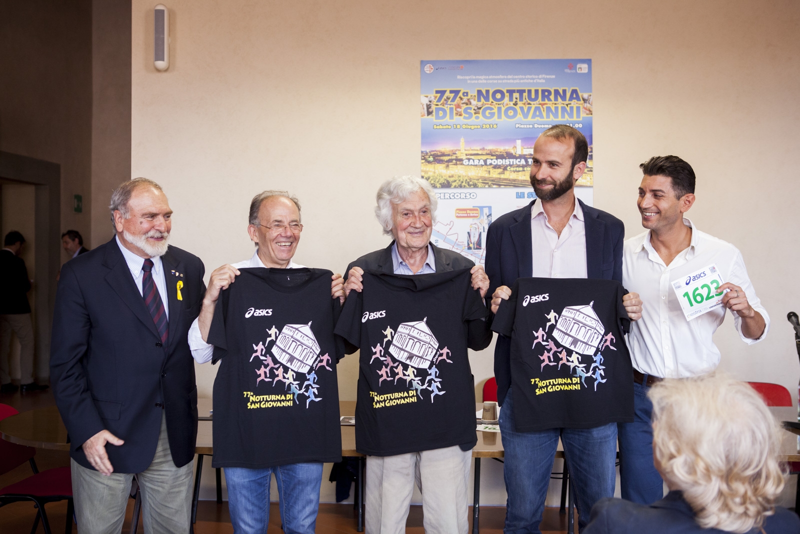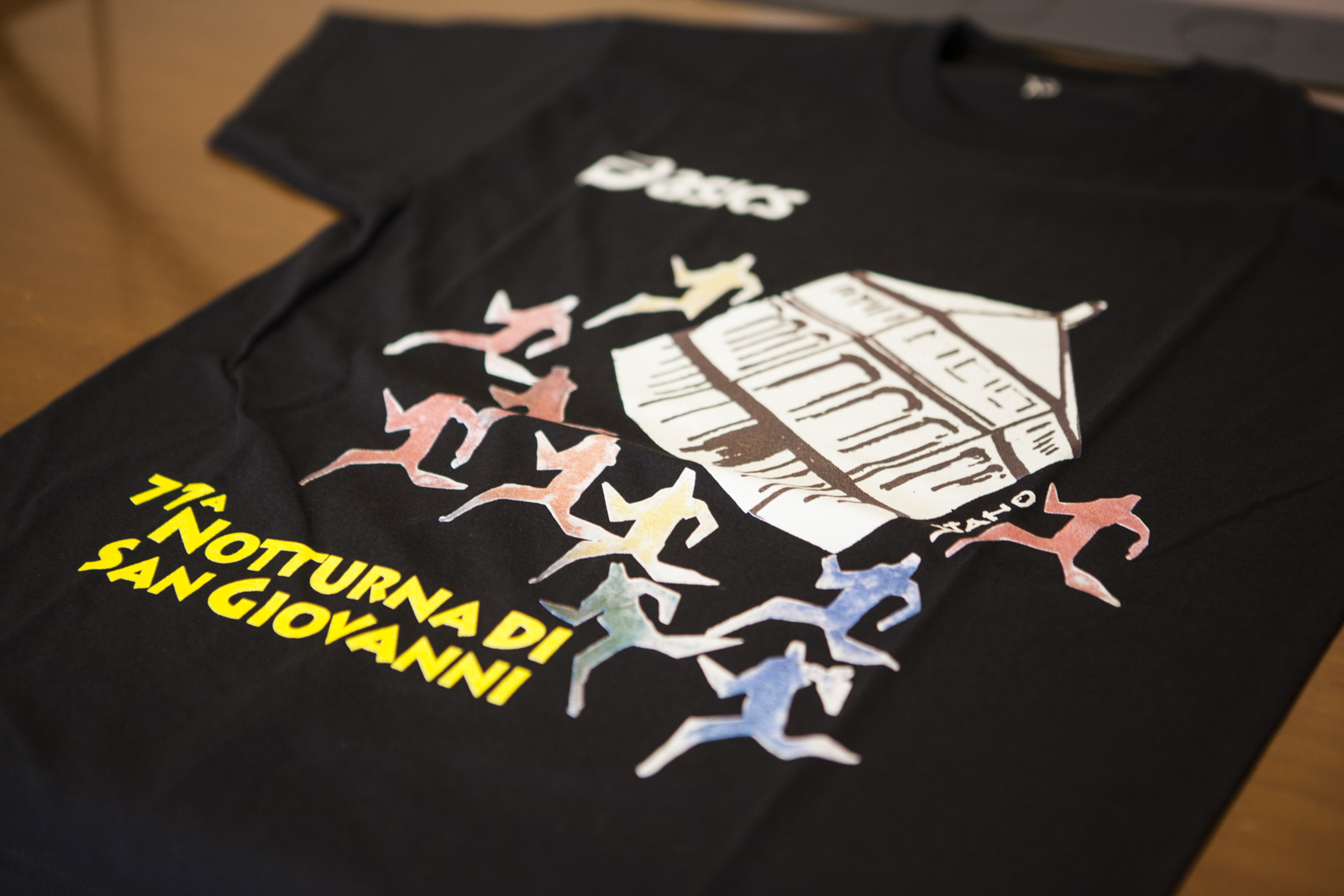 Di particolare pregio la maglia t-shirt ASICS con disegno esclusivo a colori che viene regalata quest’anno a tutti coloro che si iscrivono e che arricchirà la collezione annuale di tutti i podisti che tornano ogni anno a correre la gara: è opera del maestro Silvano “Nano” Campeggi di cui di recente si sono festeggiati i 90 anni. Silvano Campeggi, fiorentino, pittore, è autore dei manifesti di film quali Bambi, Ben Hur, Casablanca, Il principe e la ballerina e Via col vento. Campeggi tra l’altro ha dipinto Marylin Monroe con i colori di Bagno a Ripoli, dove risiede, dedicando alla star americana, che egli incontrò di persona, quadri, litografie e mostre. “Con questa collaborazione – ha sottolineato con modestia l’artista – mi sono messo in vista con tutti i fiorentini, una bella responsabilità”. La maglia rappresenta, come ha spiegato lo stesso autore, “un gioco di prestigio tra Battistero e persone che corrono, e per disegnarla ho adottato una tecnica mai adoperata prima”. “Il fatto che un artista come Campeggi – ha sottolineato Eugenio Giani – che è il numero uno nel suo campo, abbia onorato l’organizzazione della Notturna di San Giovanni, organizzata a sua volta dagli autentici specialisti delle corse su strada, a partire dalla maratona, è un fatto straordinario. Nell’anno in cui si festeggiano i 750 anni dal battesimo di Dante Alighieri proprio in quel battistero raffigurato da Campeggi e davanti al quale partirà la gara”.