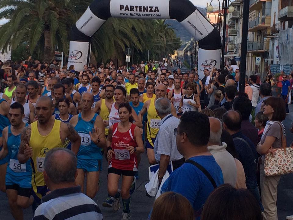 quelll’arco e ricevere la medaglietta della manifestazione. A seguire hanno corso le categorie giovanili fidal, partendo dagli esordienti per poi passare ai cadetti e per finire i ragazzi. Alle 19 è stata la volta degli amatori/master che si sono sfidati su di un percorso di 2 km da ripetere 4 volte. Lo start della gara, valida come 6° tappa del GP provinciale dei due mari, è stato preceduto da un minuto di raccoglimento per colei che ha portato l’atletica messinese sul tetto del mondo, la campionessa Annarita Sidoti che fu presente e diede il via all’edizione del 2014 della Corri Marina. Entrando nei dettagli della competizione ancora una volta il vincitore della Corri Marina è stato Natalino Grosso con il crono di 25’50”, meglio noto come “Figlio dei fiori”, che corre tra le fila dell’indomita Torregrotta; dietro di lui Massimo Lisitano della Podistica Messinae il compagno di squadra Don Vincenzo Puccio. Tra le donne si è imposta Antonina Siracusa (29’53”) del Cus Palermo insidiata da Tatiana Betta della Podistica Messina che arrivava 26″ dopo e che vince la cateogoria SF45. Gli arrivati sono stati ben 206. Un pubblico caloroso ha popolato tutto il lungomare di che per un intero pomeriggio non ha visto auto ma soltanto i passi degli atleti. La cerimonia di premiazione si è aperta con i ringraziamenti