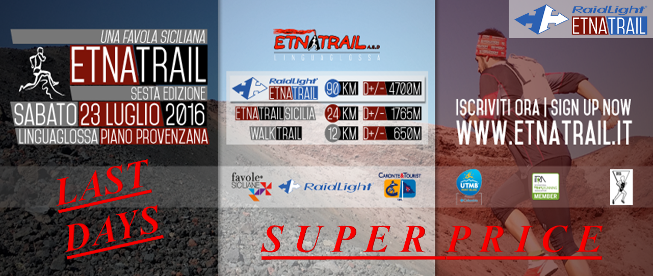Ultimi giorni per iscriversi con tariffa agevolata alla Raidlight Etna Trail, manifestazione in programma il prossimo 23 luglio, organizzata dall’Etna Trail ASD Linguaglossa. L’offerta promozionale, infatti, scadrà il 30 giugno.
