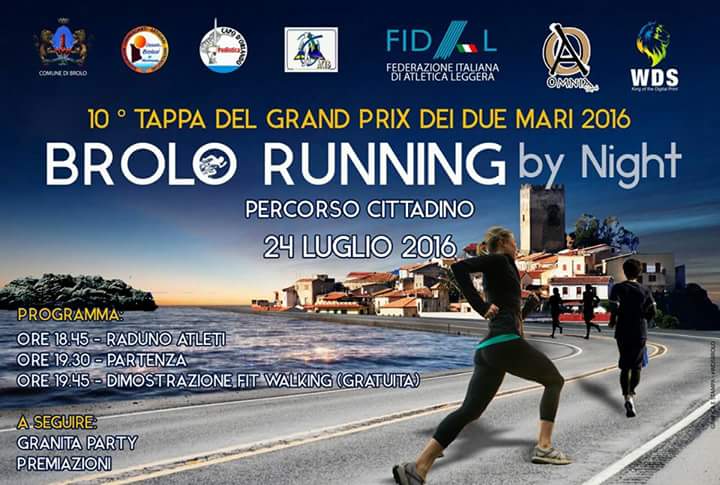 Brolo (Me). In programma domenica 24 luglio la “Brolo Running by Night “. La manifestazione, valida come 10^ prova Provinciale del Grand Prix dei Due Mari, è indetta dal Comitato Provinciale FIDAL di Messina e organizzata dall’ A.S.D. Podistica Capo d’Orlando, con il patrocinio del Comune di Brolo e con il controllo dei Gruppo Giudici di Gara di Messina.