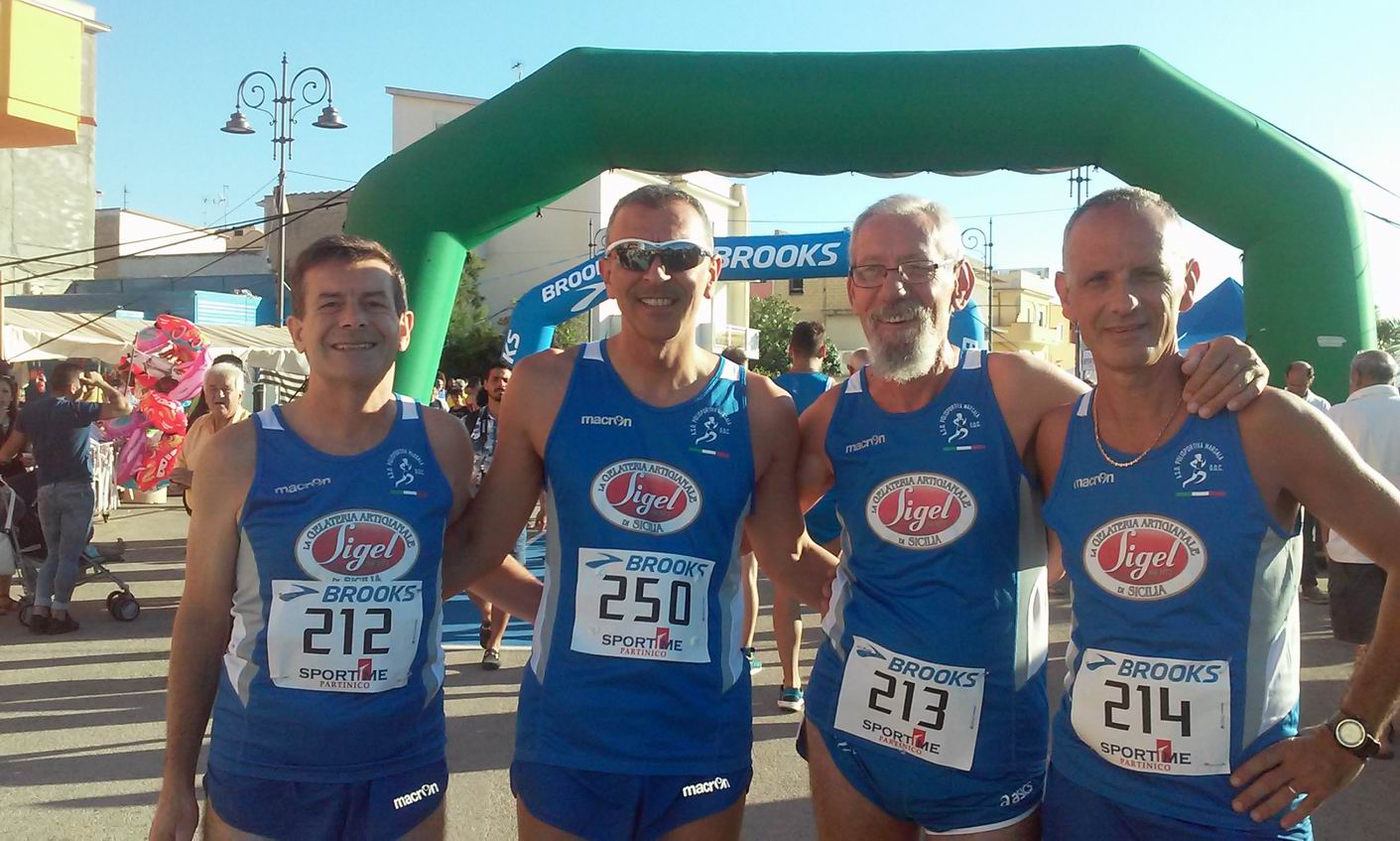 per over 60 e donne), con diversi saliscendi e curve a gomito nel piccolo centro del Palermitano. A correre, in questo caso, sono stati Antonio Pizzo, Agostino Impiccichè, Mario Pizzo e Roberto Pisciotta. Infine, motivo di grande soddisfazione è stato per la dirigenza e i soci-atleti della Polisportiva Marsala Doc il premio “91025” ricevuto per aver organizzato, con grande partecipazione di atleti (quasi 900 iscritti), la Maratonina Biotrading Cup dello scorso 24 aprile. Una manifestazione sportiva, quindi, che per la città ha avuto anche una grande valenza economica, se si considera che nell’occasione alberghi, b&b e ristoranti hanno fatto registrare il “tutto esaurito”. A ritirare il premio è stato il presidente Filippo Struppa.