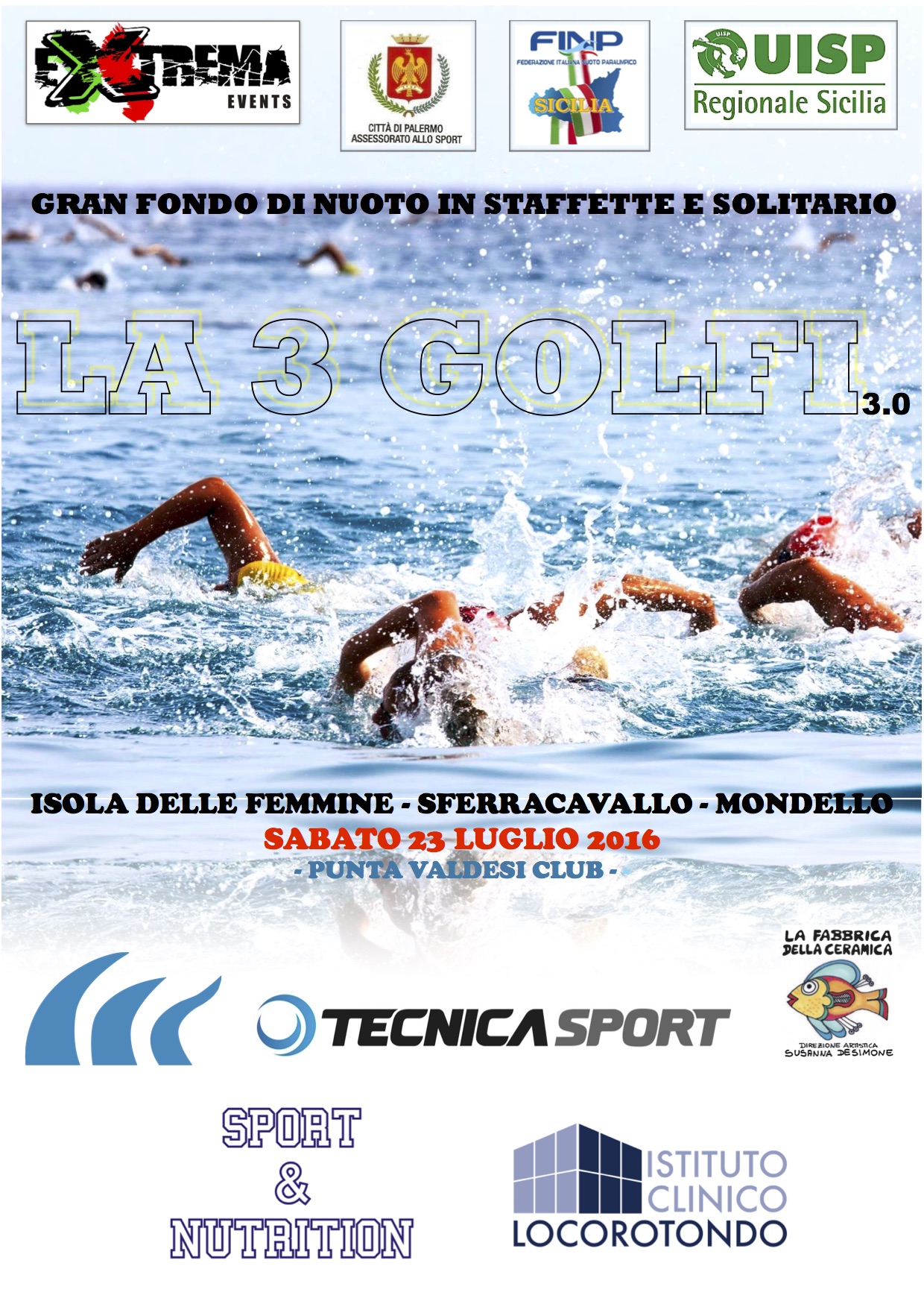 Al via domani sabato 23 Luglio, la manifestazione di nuoto in acque libere “La 3 Golfi” 3.0 ideata e organizzata da Mauro Giaconia della Extrema a.s.d. in cooperazione con il Comune di Palermo Assessorato allo Sport e la Uisp Regionale Sicilia.