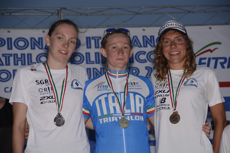 Assoluto. Maschile. 1. Luca Facchinetti (Triathlon Ravenna) 1h52’24’’, 2. Delian Stateff (Fiamme Azzurre) 1h52’43’’, 3. Massimo De Ponti (Carabinieri) 1h53’10’’,  4. Giulio Molinari (Carabinieri) 1h53’50’’, 5. Gregory Barnaby (707) 1h54’12’’, 6. Marco Dalla Venezia (Liger Team Keyline) 1h54’31’’, 7. Dario Chitti (Cus Parma) 1h54’44’’, 8. Tommaso Crivellaro (DDS) 1h54’56’’, 9. Alberto Casadei (Fiamme Oro) 1h55’42’’, 10. Stefano Rigoni (Padovanuoto Fidia) 1h56’35’’. Femminile. 1. Verena Steinhauser (Triathlon Cremona) 2h05’12’’, 2. Sara Papais (TD Rimini) 2h05’58’’, 3. Giorgia Priarone (TD Rimini) 2h06’35’’, 4. Elena Maria Petrini (Fiamme Azzurre) 2h06’46’’, 5. Ilaria Zane (DDS) 2h06’56’’, 6. Angelica Olmo (Carabinieri) 2h07’25’’, 7. Sara Dossena (Raschiani Triathlon Pavese) 2h08’00’’, 8. Margie Santimaria (Fiamme Oro) 2h08’34’’, 9. Francesca Ferlazzo (TTS) 2h12’02’’, 10. Sharon Spimi (Polisportiva Riccione) 2h12’09’’.