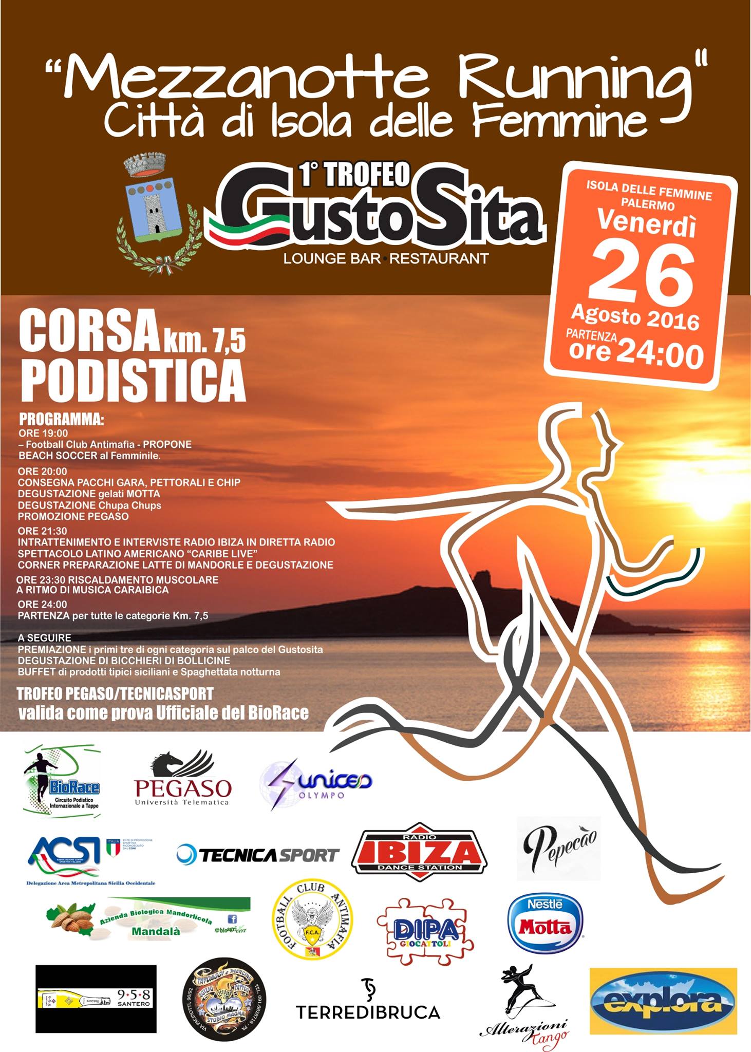 Isola delle Femmine (Pa). Si accendono i motori dell’evento estivo BioRace per eccellenza la “Mezzanotte Running” Patrocinato dal Comune di Isola delle Femmine in programma venerdì 26 agosto ’16 allo scoccare della mezzanotte, che in questa occasione sarà ospitato dalla Città di Isola delle