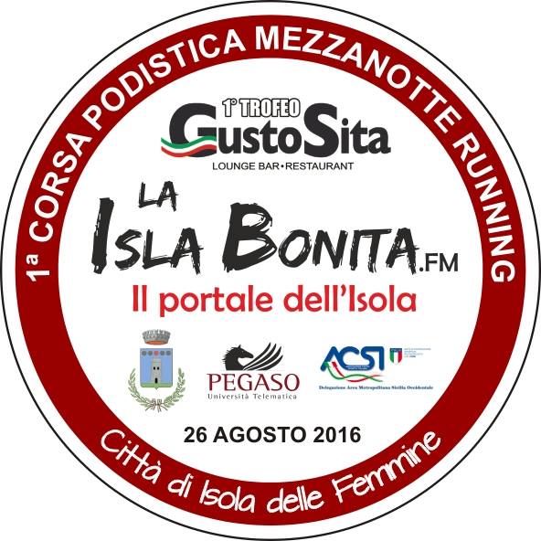 Isola delle Femmine (PA). E’ andata sold out la prima edizione della Mezzanotte Running Città di Isola delle Femmine Trofeo GUSTOSITA in programma oggi 26 agosto alle ore 24,00; le richieste di iscrizioni arrivate all’indirizzo iscrizioni@speedpass.it hanno oltrepassato il numero massimo di 250 sancendo per l’ennesima volta il successo degli eventi legati al Circuito BioRace Trofeo Pegaso/Tecnica