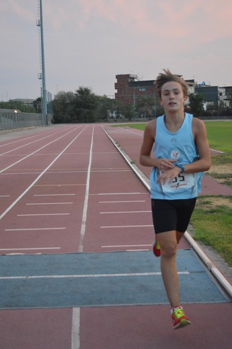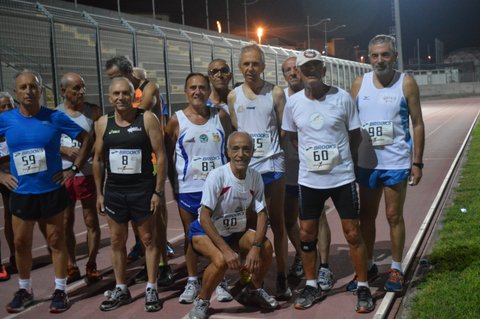 Le donne vanno a farsi la doccia, mentre io mi vado a schierare sulla linea di partenza dei “miei” 3000m. Sono in compagnia di 17 “over 60” che come me, da alcuni decenni si “misurano” su piste e strade ma che evidentemente ancora non sono “sazi”. La “spunta” è addirittura a cura del Presidente della Fidal Catania, Davide Bandieramonte, sul quale vigila comunque l’onnipresente e onnipossente Michelangelo. Ci sono foto e video per i quali “schieriamo” in prima fila Sossio Farina SM80 (Atl. Fortitudo CT), il “più veterano” tra tutti noi, poi il buon Sossio si fa da parte e finalmente si parte. Santi Caniglia (Atl. Scordia) mi “propone” subito una partenza “a razzo” chiamandomi addirittura per nome, ma io penso che tra 14 ore sarò sotto il gonfiabile del Trofeo “Città di Milazzo” e ho intenzione di correre al risparmio. Si esaurisce la prima curva ma non la spinta propulsiva di Santi, passiamo ai 200 e sono ancora sulla sua scia, poi prima del termine del primo giro, Santi ridimensiona il suo passo e solo allora decido di “rompere gli indugi” superandolo. La serata è ottima, il pubblico di parenti amici è festante, i miei avversari di batteria decidono di non “attaccare” più di tanto ed è così che io a mia volta me la prendo “comoda”. Metto in cassaforte energie pensando sempre a Milazzo. Viaggio sul minuto e quaranta al giro, alle mie spalle a debita distanza c’è però Carmelo Torrisi (ASD Jonia Giarre), anche lui domani sarà a Milazzo, ma non mi sembra voglia risparmiarsi molto. Per mantenerlo a “debita distanza” sono costretto a rimanere al di sotto dei 4 e 15 al km. Lo speaker Marcellino “declama” i nostri nomi al passaggio di ogni giro, non offriamo molti spunti di cronaca, non farò neppure un buon tempo, viaggio in “classe energetica economica A++”. Finalmente Carmelo decide di venire a più miti consigli e rallenta, cosicché posso percorrere gli ultimi 500m quasi in defaticamento. Taglio il traguardo, dopo qualche secondo lo fa anche Carmelo, un abbraccio e un arrivederci al mattino seguente per la rivincita. Per noi la fatica è finita; riconsegniamo ad Alessia e Roberta il pettorale, in cambio riceviamo una bibita che al solito io non berrò. Ma le batterie si susseguono e altri atleti scendono in pista: Santo Vazzano (Atl. S. Pietro Clarenza), il pasticcere Clarentino, “mette in fila “ gli atleti delle categorie SM50 e 55. Mentre la più combattuta risulta la batteria della SM45 dove Salvatore Epaminonda (Atletica Sicilia) prevale alla fine di un acceso duello su Carmelo Rapisarda dell’Atl. Sant’Anastasia e Sebastiano Ragonese (Atl. Linguaglossa). Vittorie per Giuseppe Pulvirenti (Virtus Acireale) SM40, Antonino Ferrara (Atl. Sant’Anastasia) SM35 e Luca Stagno tra i veri giovani (Atl. S. Pietro Clarenza).