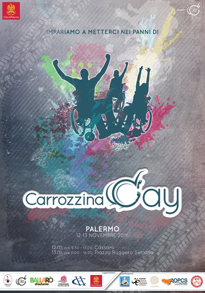 Palermo. Il 12 e il 13 Novembre prossimo, rispettivamente al Cassaro (dalle ore 8.30 alle 13.30) e in Piazza Ruggero Settimo (dalle ore 11.00 alle 16.00), si svolgerà l’evento Carrozzina day, volto a sensibilizzare tutti alla necessità di vivere in una città a misura d’uomo, in qualunque condizione esso si trovi (bambino sul passeggino, persona in carrozzina, persone non vedenti, persone con difficoltà a