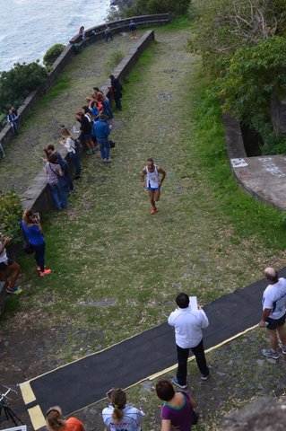 Ore 9e30. È il momento della partenza. Come spesso accade, la batteria comprende “anziani” oltre i “sessanta” e l’altra metà del cielo. Uomini e donne dunque, ma non in contrapposizione, ma in simpatica “miscellanea”. Da Sossio Farina, ultraottantenne, alle allieve presenti che potrebbero essere le sue nipoti. Michelangelo Granata sfodera la pistola e con un colpo ci dà l’OK per scappare via. La passeggiata sul lungomare, da preliminare di riscaldamento diviene agonistica. Più rapida di tutti alla partenza è proprio un’allieva, Daria Bonfiglio (Atl. Virtus Acireale), che sembra prendere subito la cosa sul serio e allunga notevolmente il passo. Sulla sua scia Patrizia Strazzeri (Atl. Fortitudo Catania), la favorita fra tutte le donne in corsa. Daria preme sull’acceleratore, io corro “al risparmio” pensando alla “salitella” delle Chiazzette” che ci attende dopo i tre giri di “passeggiata a mare” e la lascio andare. Patrizia sembra più determinata di me, va all’inseguimento di Daria e lentamente le vedo allontanarsi. Siamo al secondo giro, mi affianca Santi Caniglia (Atl. Scordia), penso che il mio correre al “risparmio” è forse eccessivo e allungo il passo. Al secondo passaggio dal gonfiabile Daria è ancora più distante, ha preso anche qualche altro metro a Patrizia. Ma al terzo giro la musica fra le due femminucce cambia. Daria, forse troppo veloce in partenza, rallenta vistosamente e all’imbocco della temuta salita, Patrizia l’aggancia. Io mi godo lo spettacolo a una diecina di secondi e anch’io imbocco la mulattiera che ci porta al “Tocco”. Dopo dieci metri di asfalto, inizia un basolato molto “approssimativo”, ci sono buche, qualche tratto è con cemento, veramente difficile correrci sopra. Rimpiango i percorsi che abbiamo criticato durante molte prove di questo Grand Prix 2016. Ma siamo alla “corsa in montagna” e dobbiamo “digerire” qualche difficoltà extra.