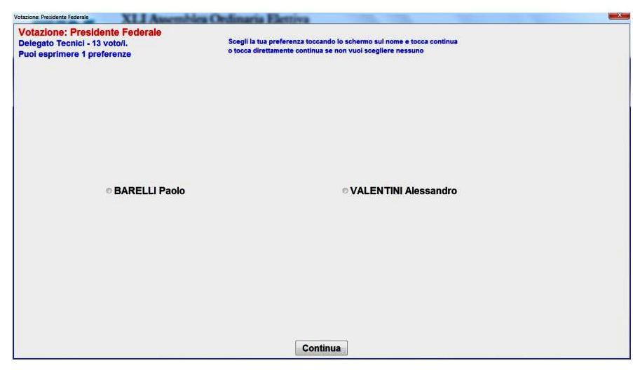 6. Per esprimere la preferenza basterà che il delegato tocchi il nome del candidato sul monitor; la scelta effettuata risulterà ben visibile per il cambiamento di colore dello sfondo del nominativo prescelto: