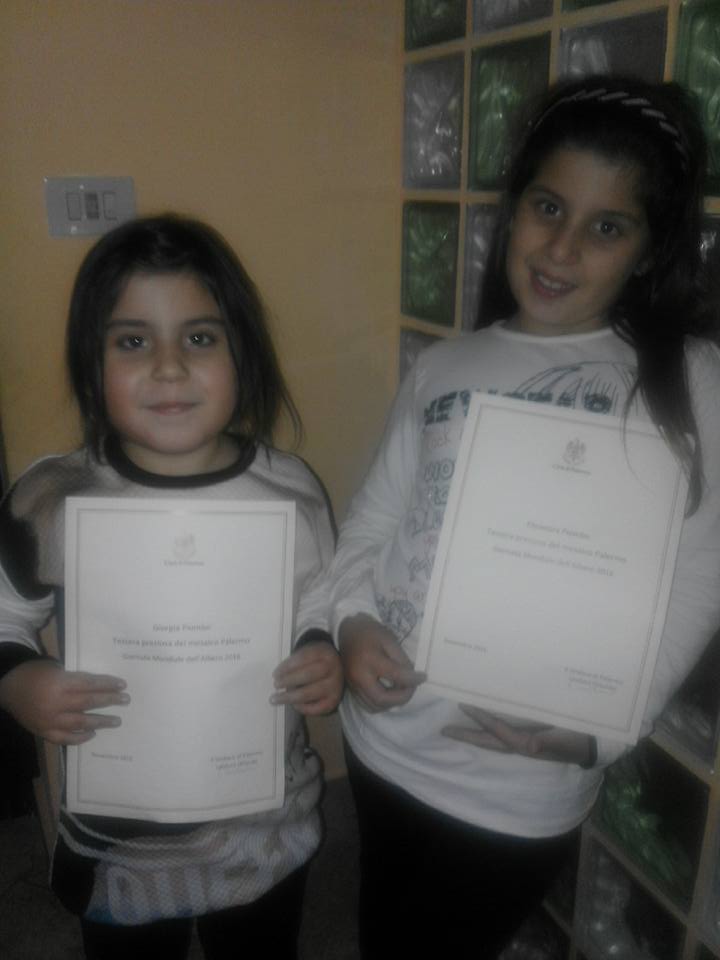 Le sorelline Eleonora (8 anni) e Giorgia (6 anni) con il loro impegno ecologista, messo in atto durante tutta l’estate adottando e curando numerosi alberelli situati in spazi pubblici, entrano quindi nel mosaico virtuale composto dalle “Personalità” che con la loro attività sia essa mentale o pratica contribuiscono a dare lustro e rappresentatività alla Città ed a quei valori etici, sociali, civili ed ambientali che l’Amministrazione di Palermo si pregia di valorizzare.