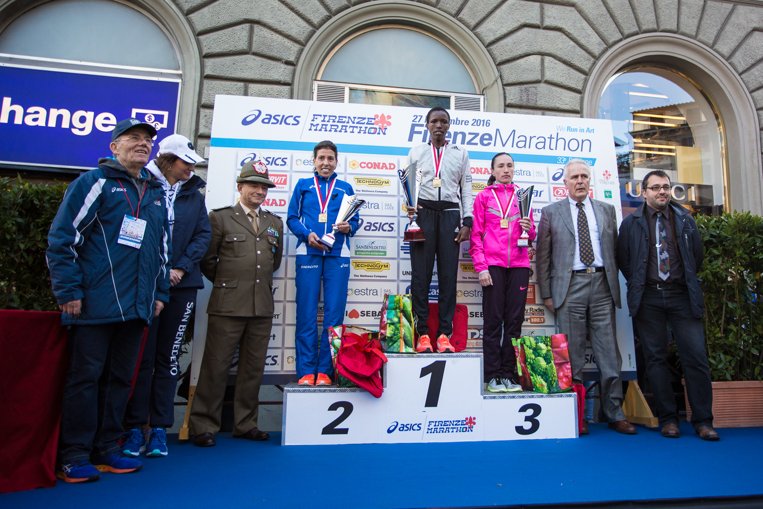 Tra le donne vittoria targata Kenia come lo scorso anno. E’ Winny Jepkorir la vincitrice con il tempo di 2h28’46” che è il secondo miglior riscontro cronometrico femminile di sempre alla Firenze Marathon. Grandissimo secondo posto per Fatna Maraoui l’italiana del GS Esercito, che ha sfiorato il record personale, mancando di soli 2 secondi il suo primato personale fatto a Valencia nel 2015, e chiudendo in 2h30’52”,