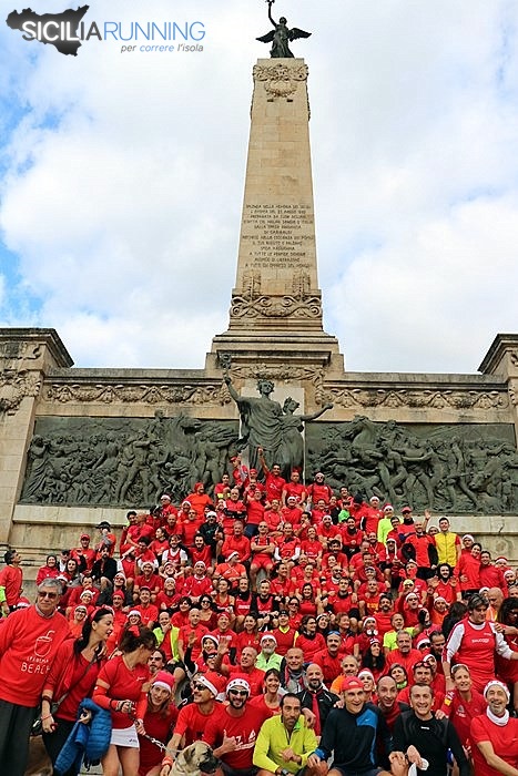 (presidente onorario) e Pino Giordano (pilastro del movimento master in Sicilia). Tra un bicchiere di spumante e una fetta di panettone, il patron della Maratona di Palermo, neo consigliere regionale della Fidal, Salvatore Gebbia ha consegnato tre targhe ad altrettanti presidenti delle società con più finisher alla XXII edizione della maratona Città di Palermo, dello scorso 13 novembre. A vincere è stata la Fiamma Rossa Palermo del presidente Salvo Badagliacca, seguita dalla Palermo Running del presidente Danilo Girgenti e dalla Palermo H 13.30 sotto la guida di Luisa Balsamo. Proprio l’ultramaratoneta palermitana è l’artefice di un’ultra manifestazione (errore voluto)…di un ‘altra manifestazione divenuta simbolo del 25 dicembre sportivo dei palermitani, “La corsa di Natale”, che ha radunato sotto la statua della Libertà oltre 100 podisti tutti rigorosamente con maglia rossa e cappellino in tinta; solito colpo d’occhio da incorniciare, solita goliardia, selfie e via per otto chilometri di una non competitiva che ha attraversato il centro palermitano con suggestivo passaggio all’interno di