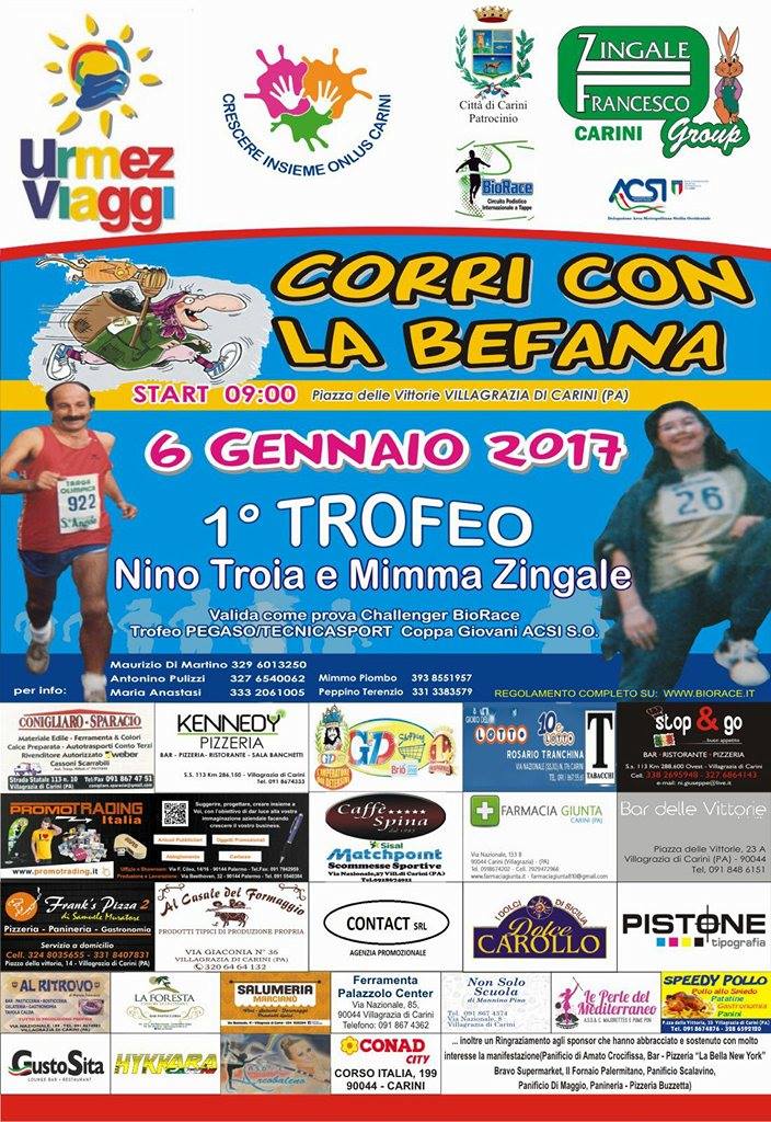L’Epifania quest’anno fa tappa a Villagrazia di Carini, in occasione della Corri con la Befana 1° Trofeo Nino Troia e Mimma Zingale, in programma venerdì 6 gennaio. La manifestazione, organizzata dalla Crescere Insieme Onlus in collaborazione con la URMEZ Viaggi e l’ACSI Sicilia