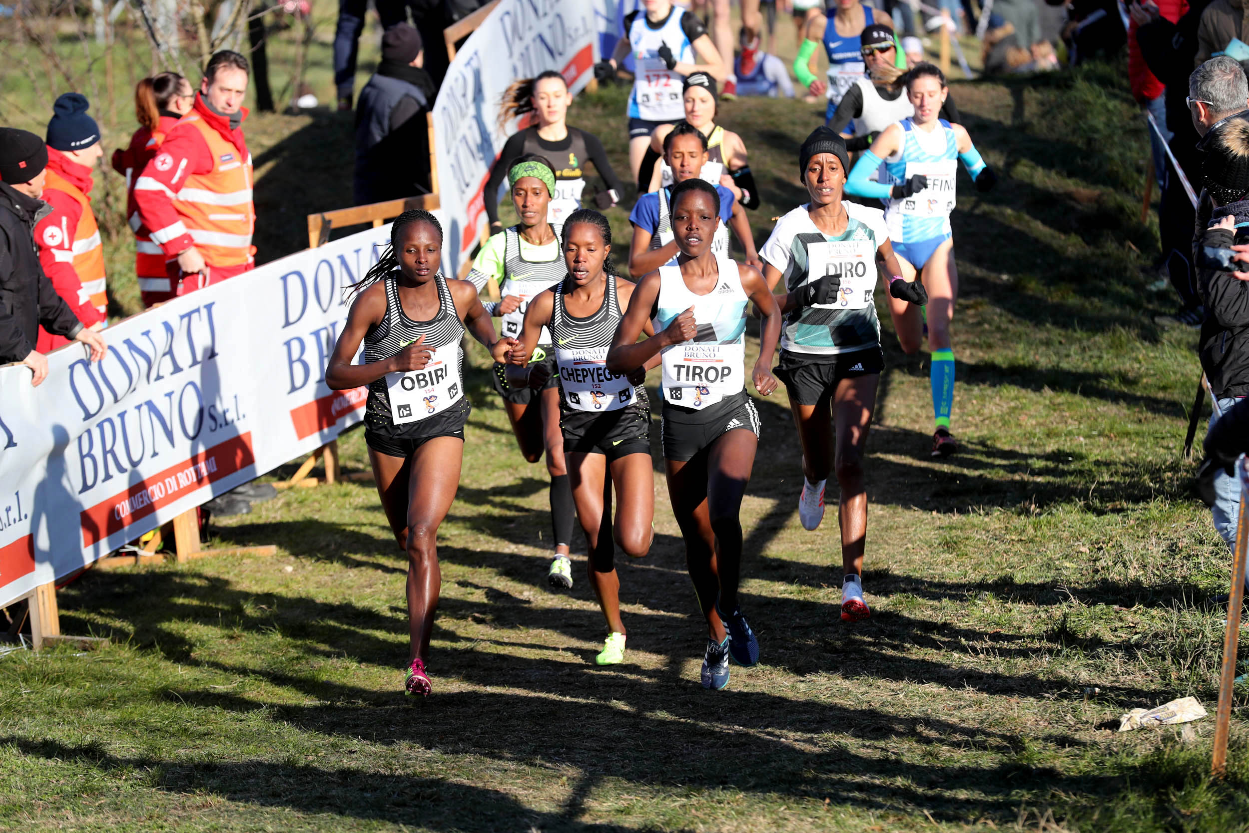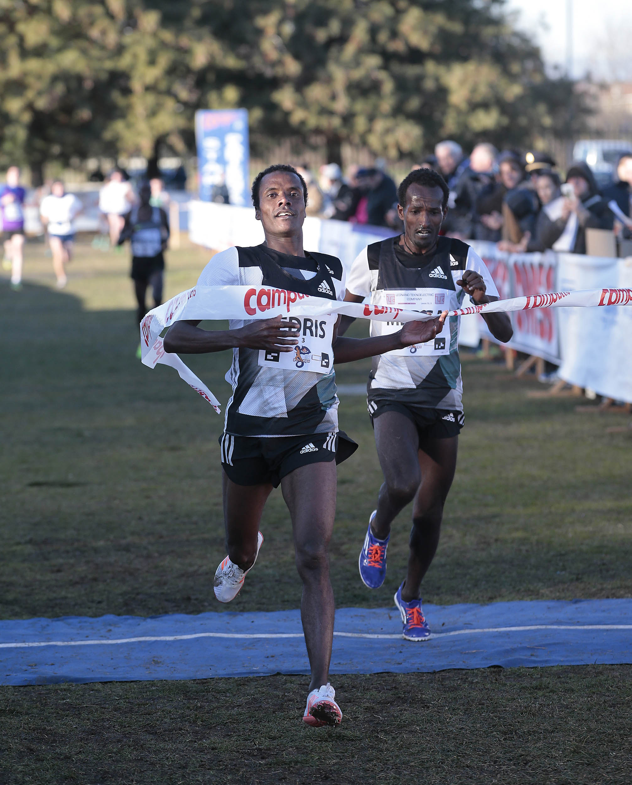 mondiali della corsa campestre. Tra questi il campione di giornata è stato l’etiope Muktar Edris che ha tagliato il traguardo dei cinque giri, 10km, in 28’54”. Non è la prima volta di Edris al Campaccio, già era venuto qui e già qui tra questi prati intorno allo stadio Angelo Alberti aveva vinto. Era il 2013, era un ragazzino fresco vincitore del mondiale juniores nei 5000 metri in pista e scrisse per la prima volta il suo nome nell’albo d’oro. Oggi ha fatto il bis battendo in volata niente meno che Imane Merga, campione del mondo di cross 2011 e vincente al Campaccio l’anno scorso. Merga è finito a un solo secondo, 28’55”, mentre porta i colori del Kenya il terzo classificato Jairus Birech, distanziato di un nulla, piombato sul traguardo in 28’59”.