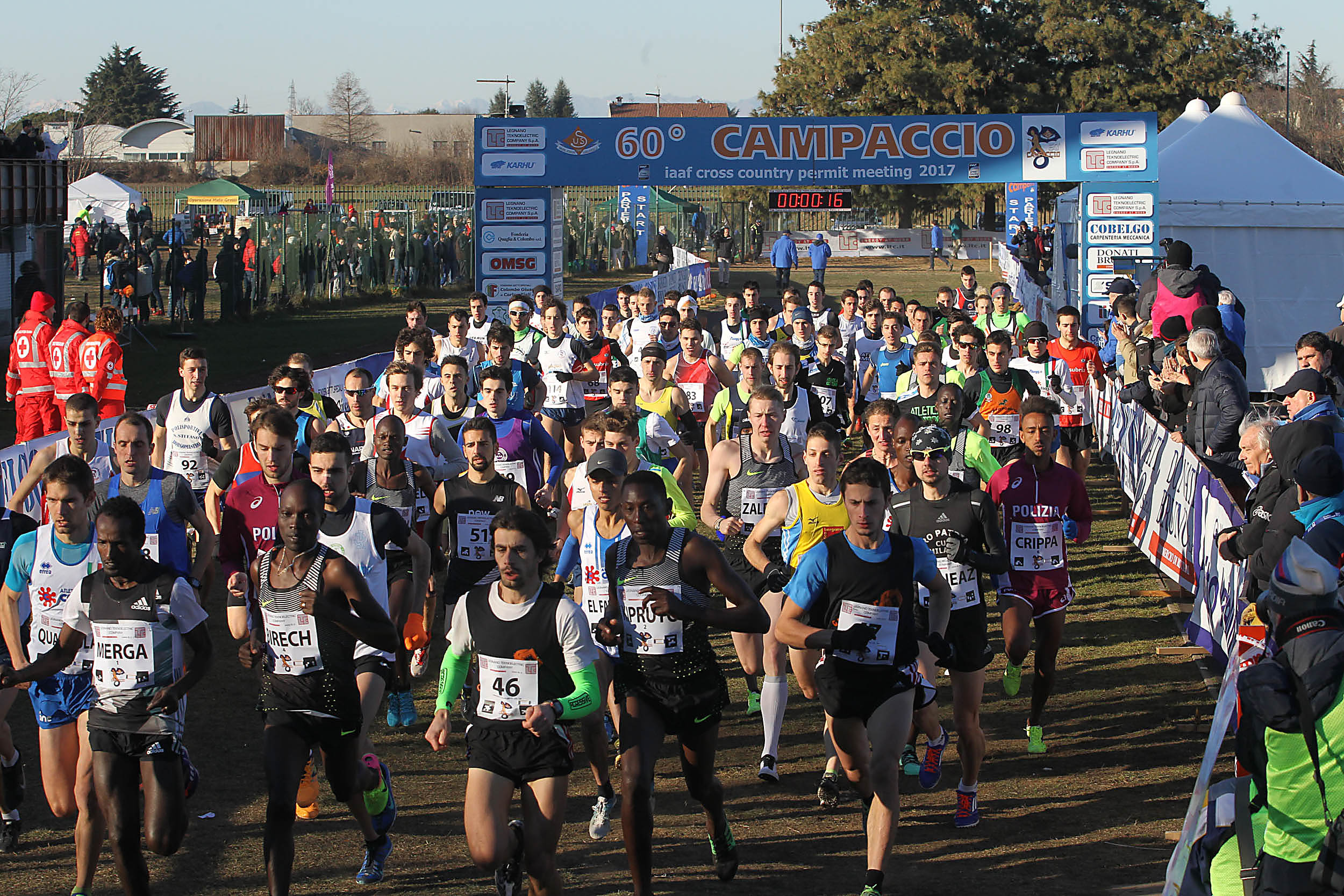 (San Giorgio Su Legnano) – ‘Sotto il cielo di San Giorgio’, come recita il titolo del libro scritto da Ennio Buongiovanni dedicato agli ultimi dieci anni, si è svolta oggi il 60° Campaccio Cross Country, terza tappa del circuito mondiale Iaaf Cross Country Permit. E il cielo oggi è stato azzurro splendente, con un sole che ha brillato e illuminato una storica edizione dove sono stati invitati a partecipare i migliori specialisti