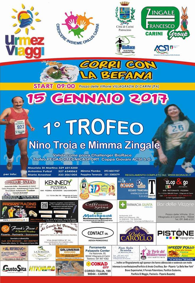 Villagrazia di Carini (Pa). Si corre domenica prossima 15 gennaio il 1° Trofeo Podistico Nino Troia e Mimma Zingale organizzato dalla Associazione Crescere Insieme Onlus e la Urmez Viaggi.