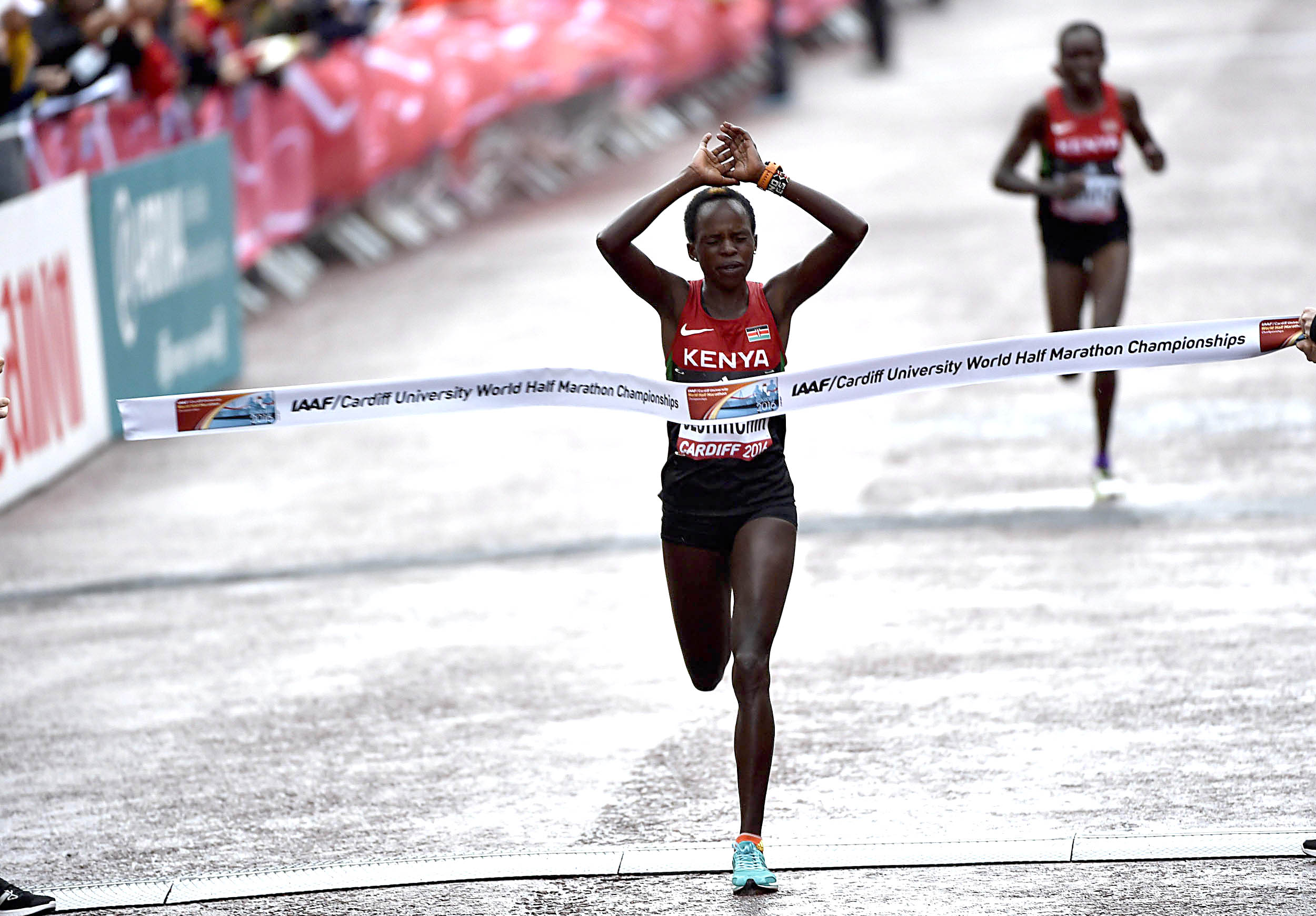 appartenevano all’altra keniana Florence Kiplagat, che li aveva ottenuti quasi due anni fa a Barcellona, il 15 febbraio 2015, rispettivamente con 1h05:09 e 1h01:54. Una doppia impresa al termine di un grande duello tra la Jepchirchir, campionessa mondiale in carica dei 21,097 km, e la connazionale Mary Keitany, due ori iridati sulla distanza e vincitrice nelle ultime tre edizioni della maratona di New York, seconda in 1h05:13 con la terza prestazione alltime che non basta per evitare la sua prima sconfitta sulla “mezza” dal 2007 dopo tredici successi di fila. Proprio nella velocissima gara araba, la Keitany era riuscita a centrare entrambi i record mondiali nel 2011 con 1h05:50 e 1h02:36, ma se li è visti sottrarre dalla Kiplagat sulle strade della città spagnola nel 2014 con successivo miglioramento nel 2015.