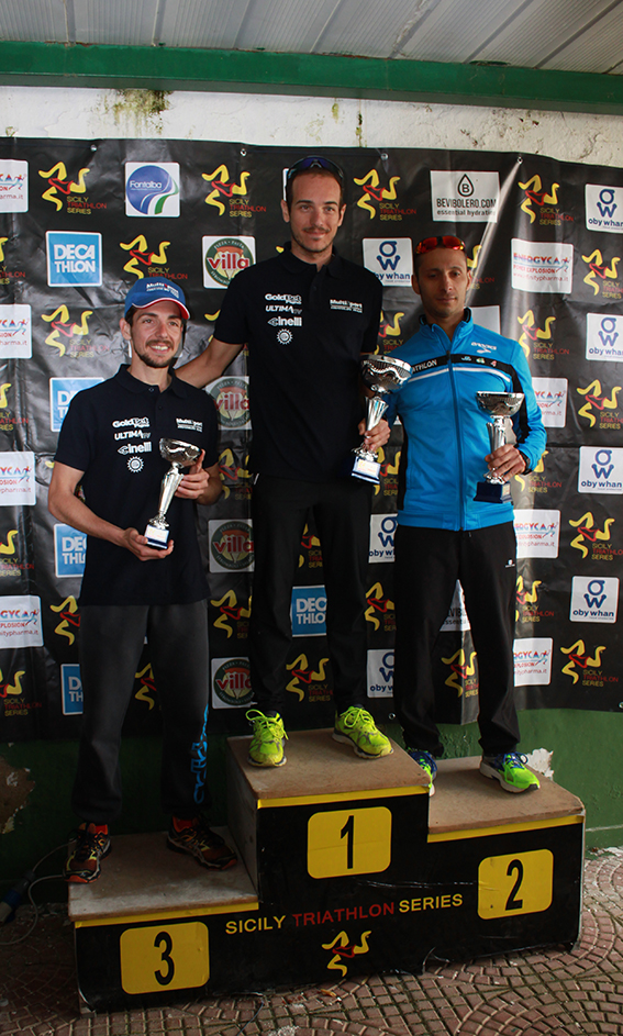 Nelle categorie assoluti maschile l’augustano Ennio Salerno (Multisport Catania, tempo 57:08) ha rispettato i pronostici piazzandosi al primo posto; alle sue spalle, Alessandro Jeraci (Triathlon Team Sassari) e Massimiliano Sardo (Multisport Catania).