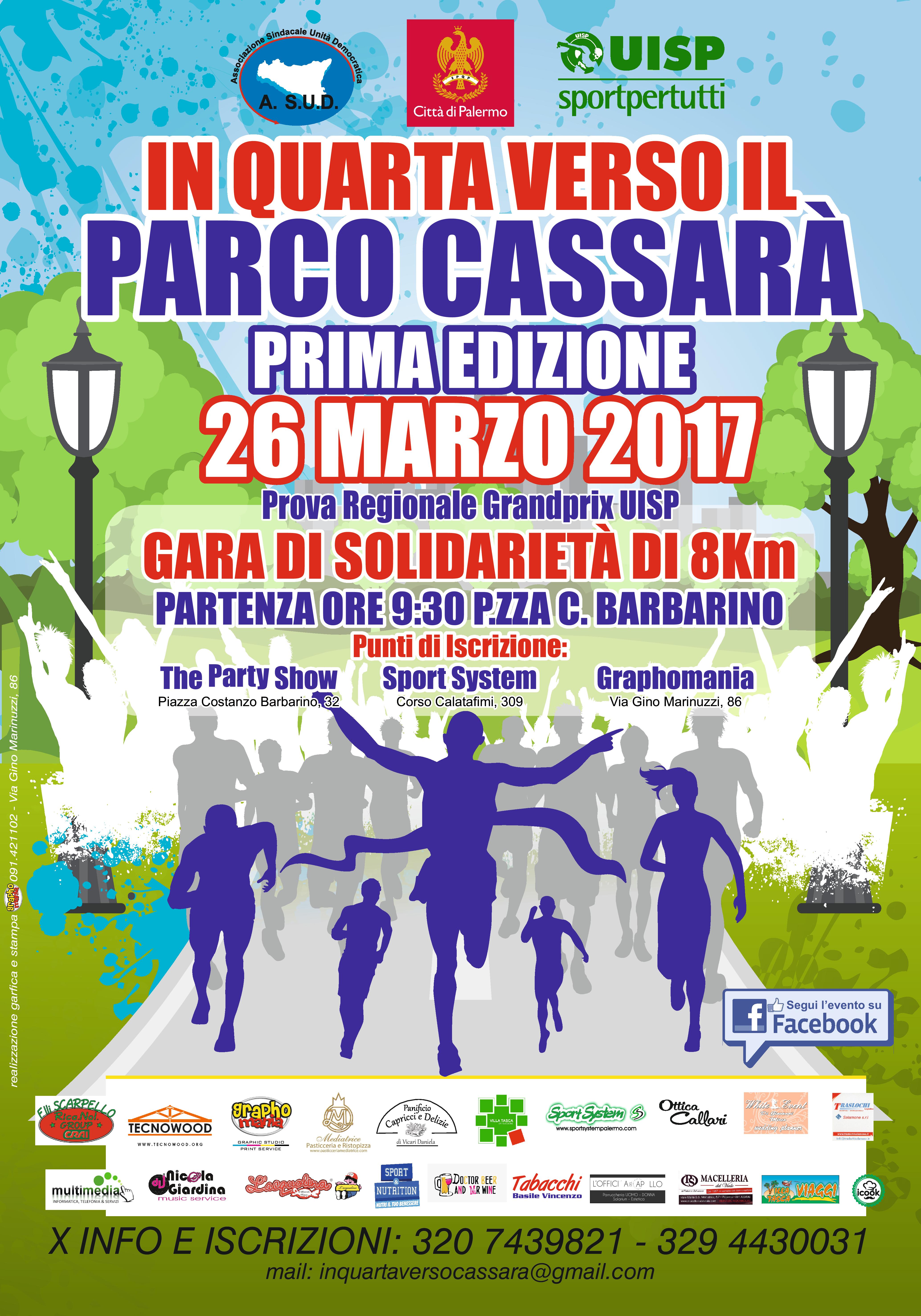 La gara prende il nome “In quarta verso il parco Ninni Cassarà”, auspicio per una ripartenza secca e perentoria verso la riapertura. La manifestazione è in programma domenica 26 marzo ed è valida come seconda prova del circuito regionale Uisp Sicilia. La gara rientra negli eventi per il Vivi Città, promossi da Uisp e A. S.U.D che invitano e mirano a valorizzare gli spazi palermitani.
