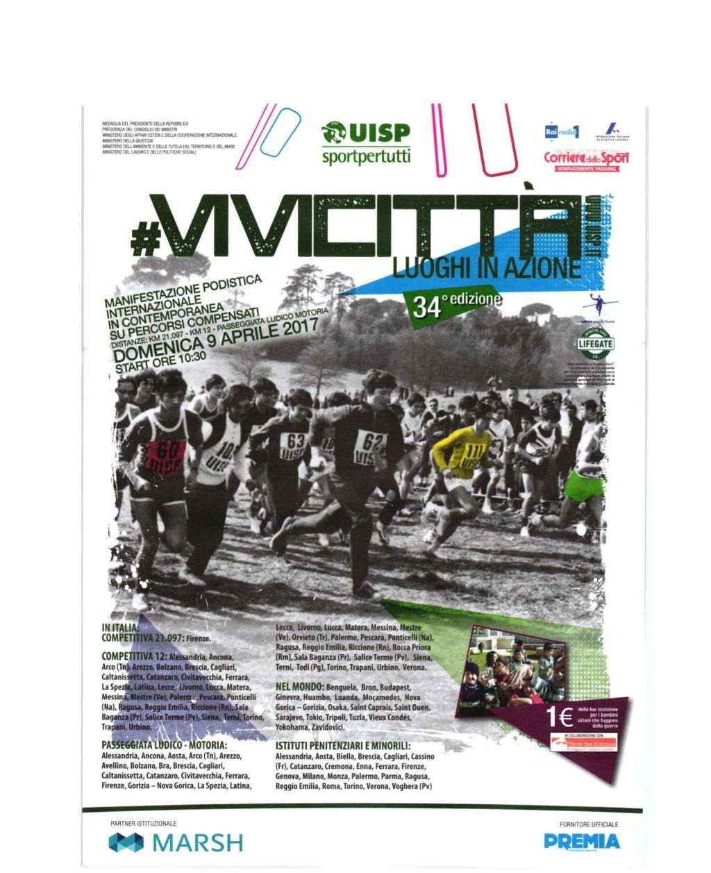 Vivicittà: per l’ambiente, per la pace, per il dialogo, per l’integrazione. L’iniziativa, simbolo dell’Uisp, è la corsa di tutti e per tutti, caratterizzata da un forte impegno sociale, civile e ambientale. Si corre in contemporanea in decine di città italiane e estere.