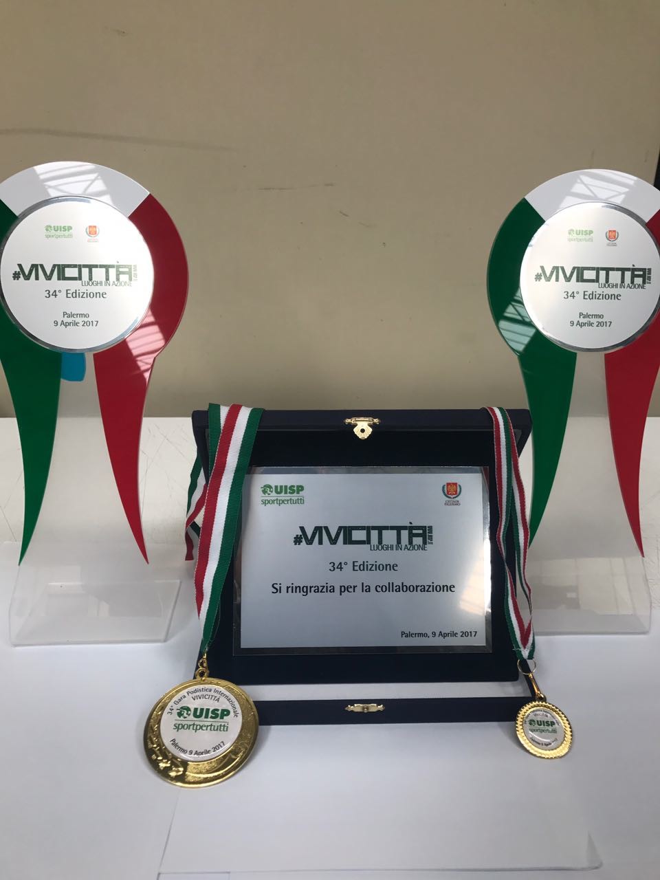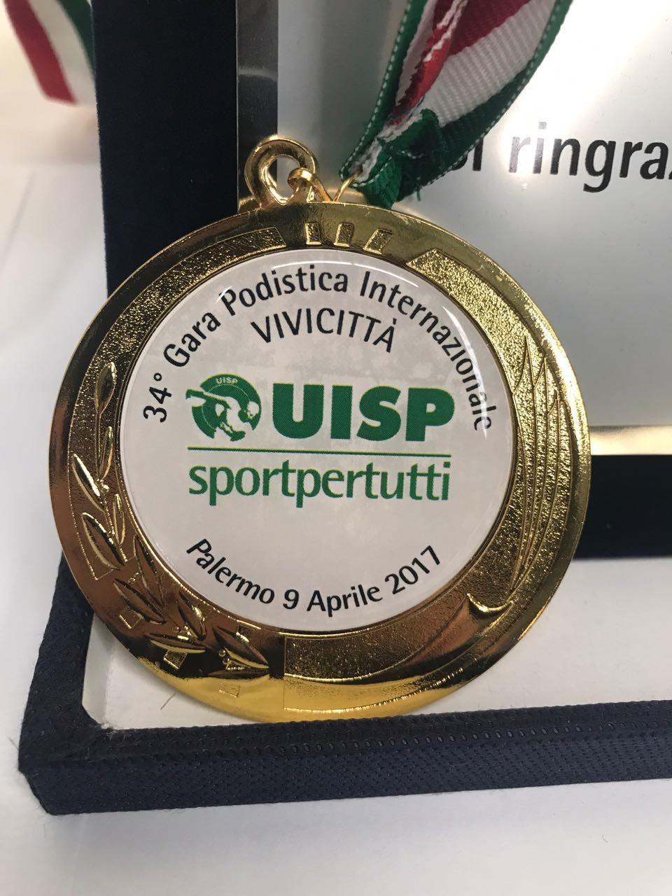 In anteprima vi mostriamo la medaglia che andrà a tutti coloro che domenica prossima 9 aprile porteranno a termine la 34a edizione del Vivicittà di Palermo. A questa si aggiungerà la medaglietta che riceveranno tutti i bambini (iscrizioni chiuse a quota 3000) che prenderanno parte alla passeggiata ludico motoria.