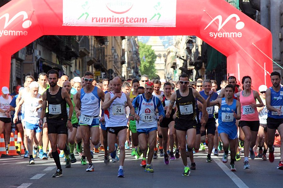 Palermo. Festa della Liberazione di corsa a Palermo con la 1° edizione del Trofeo Equlibra Running Team che ha visto protagonisti oltre 200 atleti, che si sono dati battaglia tra le vie del centro storico del capoluogo siciliano. I Quattro Canti, via Maqueda, il teatro Massimo, la Cattedrale…il percorso Arabo-Normanno dichiarato patrimonio dell’umanità dall’Unesco, invaso oggi oltre che dai turisti anche dai podisti in