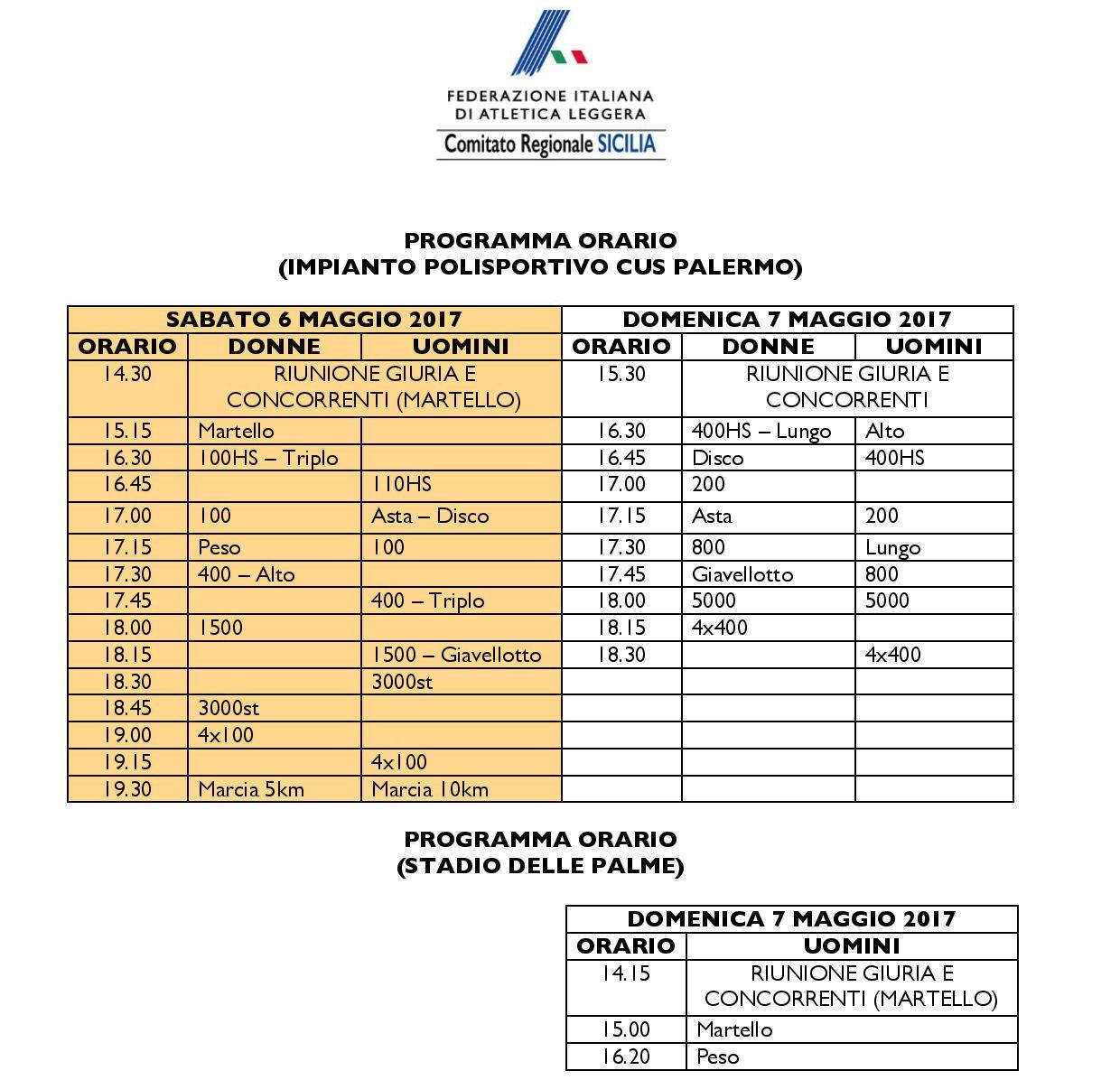 Nell’isola si gareggerà a Palermo (6 e 7 maggio). Questo il programma orario: