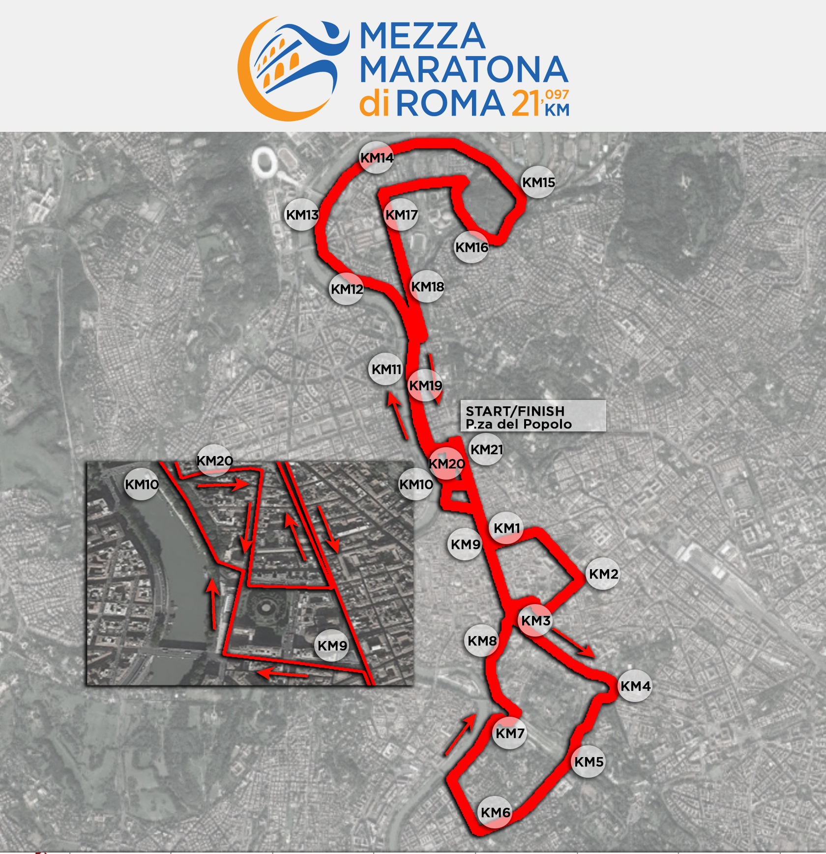 La partenza, alle ore 21, avverrà da Piazza del Popolo, stesso luogo dell’arrivo e i primi 10 chilometri toccheranno il cuore del centro storico della Capitale: via del Corso, via del Tritone, via Nazionale, Piazza Venezia, via dei Fori Imperiali, Piazza del Colosseo, via di San Gregorio, viale Aventino, via dei Cerchi con vista sul Circo Massimo, Piazza della Bocca della Verità, via del Teatro di Marcello, Piazza Venezia, via del Corso, via di Ripetta, Piazza Augusto Imperatore e Passeggiata di Ripetta.