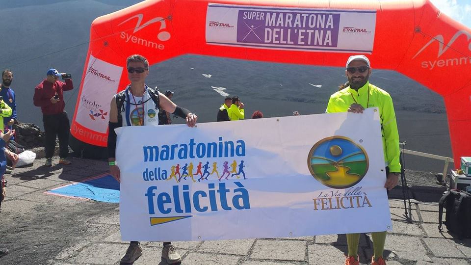 Per un podista poco esperto era una missione impossibile, ma l’impresa è riuscita: abbracciare idealmente tutta l’Italia per promuovere la Maratonina della Felicità partecipando alla Super Maratona dell’Etna, la gara da guinness dei primati per i suoi 43 km ininterrotti di salita, dalla spiaggia di Marina di Cottone ai 3000 metri di quota, quasi in cima all’Etna.
