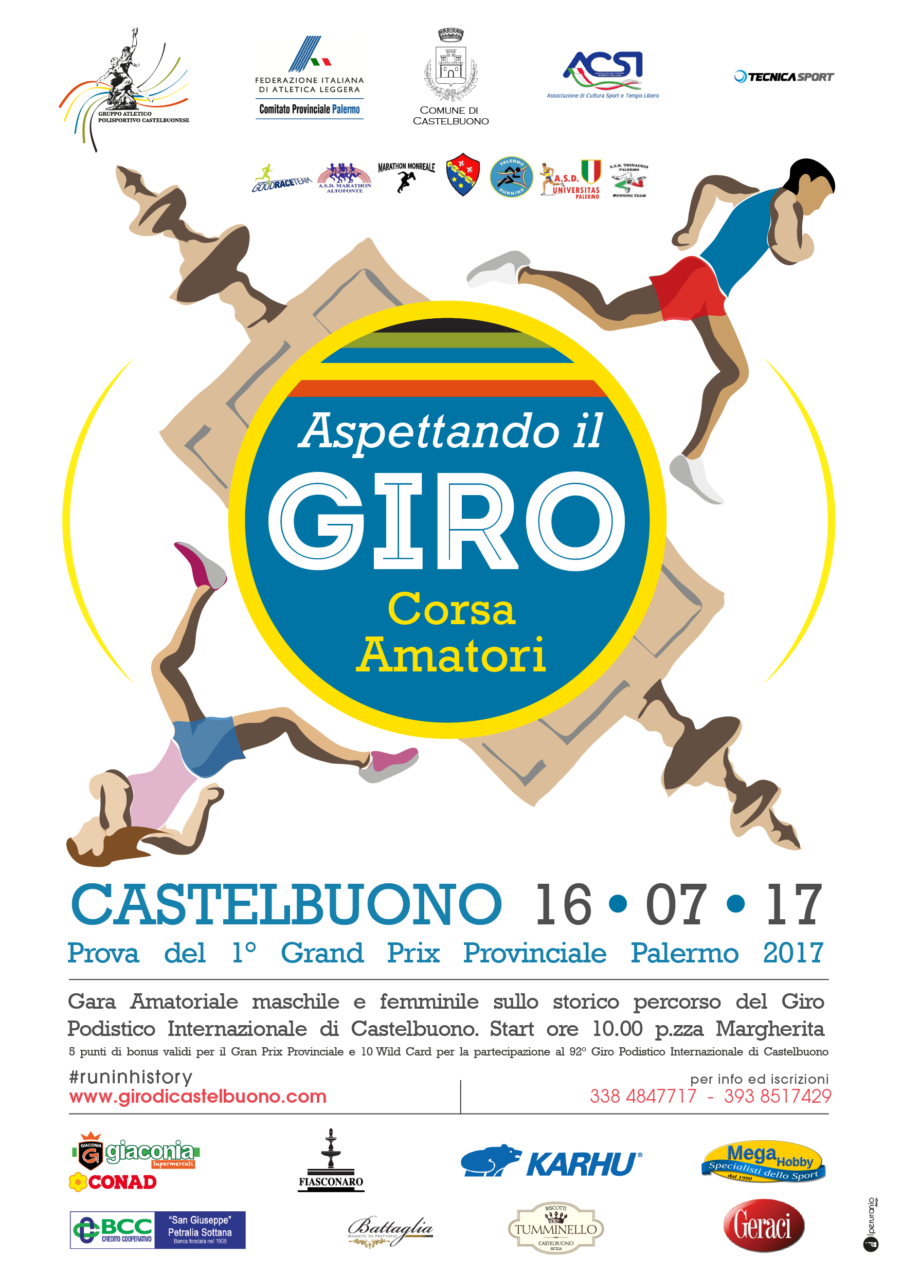 Le società ASD Universitas Palermo e il Gruppo Atletico Sportivo Castelbuonese, in collaborazione con il Comitato Provinciale ACSI di Atletica Leggera, organizzano per la giornata di domenica 16 luglio, la manifestazione “Aspettando il Giro di Castelbuono – 1° Trofeo Città di Castelbuono“. La gara è valida come 5^ prova ufficiale del Grand Prix Provinciale FIDAL Palermo e prevede l’attribuzione di 5 punti bonus a tutti gli atleti arrivati. Ma non finisce qui perché la manifestazione che precede il 92° Giro podistico Internazionale di Castelbuono, quest’anno sarà valido come Campionato Regionale di Corsa su Strada ACSI Senior/Master.